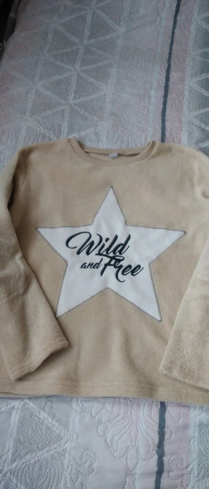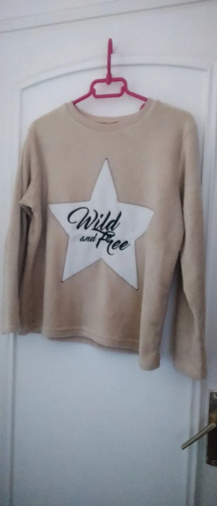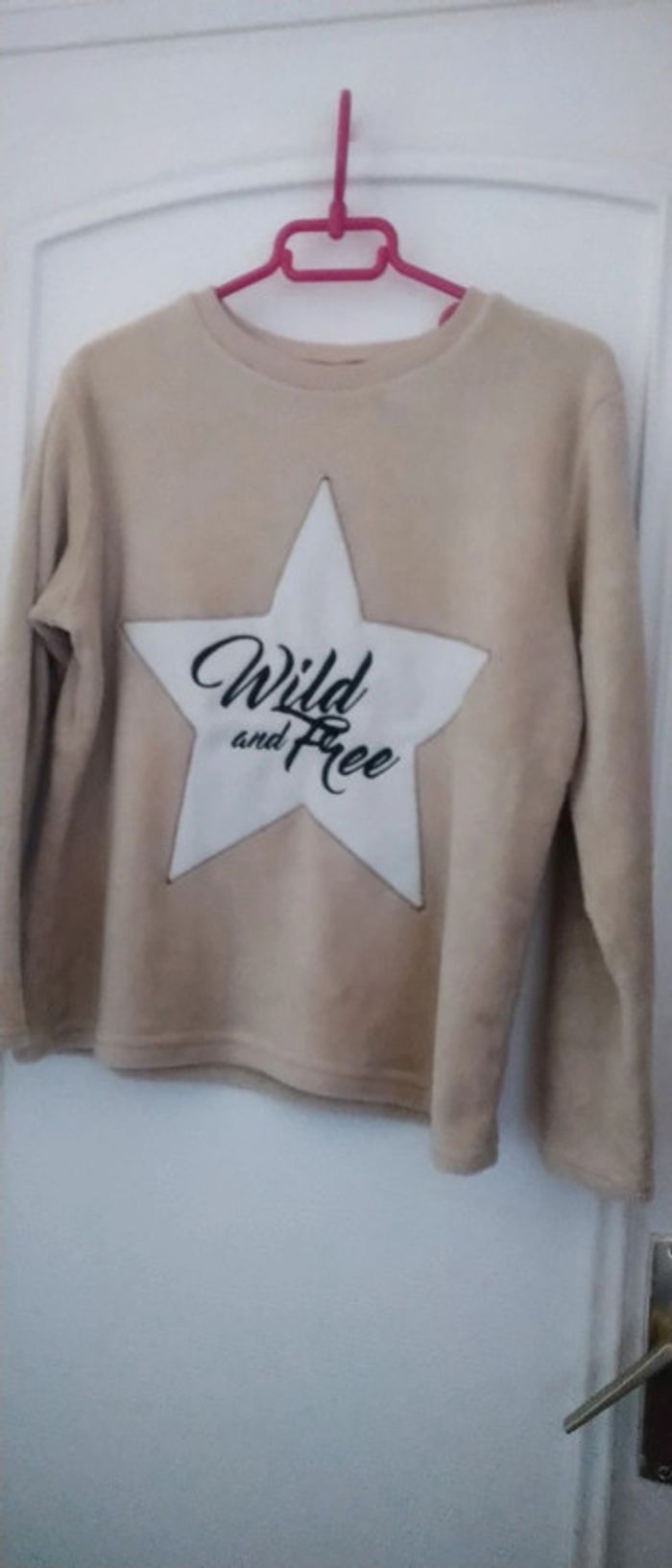 Sweat en polyester aspect peluche tout doux coupe large motif étoile crème et texte wild and free longueur 62 cm largeur aisselles à aisselles 56 cm largeur épaules 43 cm longueur manches 56 cm très peu porté en très bon état n hésitez pas à faire un lot dans mon dressing pour bénéficier d une réduction #midole #midolefemme40 #midolefemmeL #sweat #sweatpeluche #sweatlarge #beige #femme #femmeS #etoile #femmeL #femme40