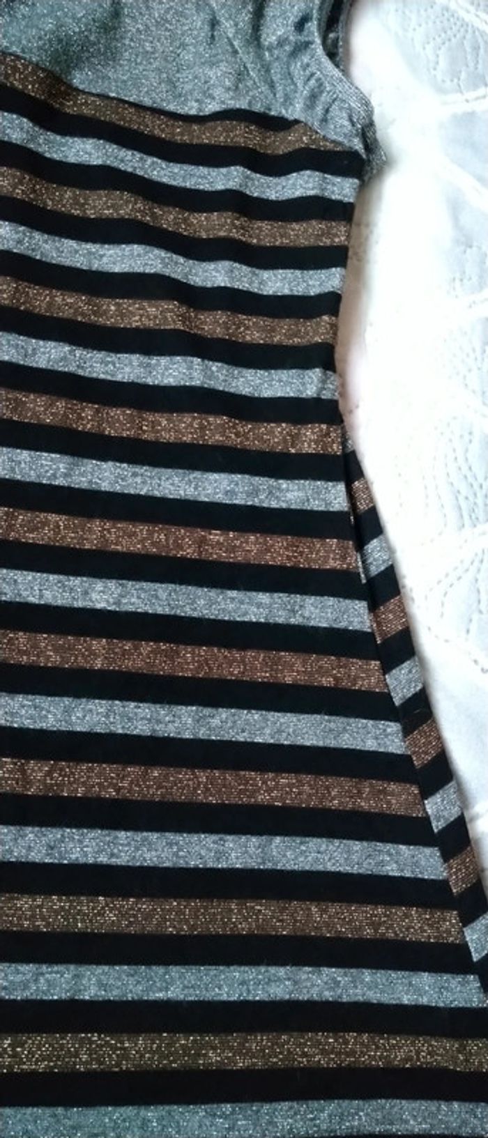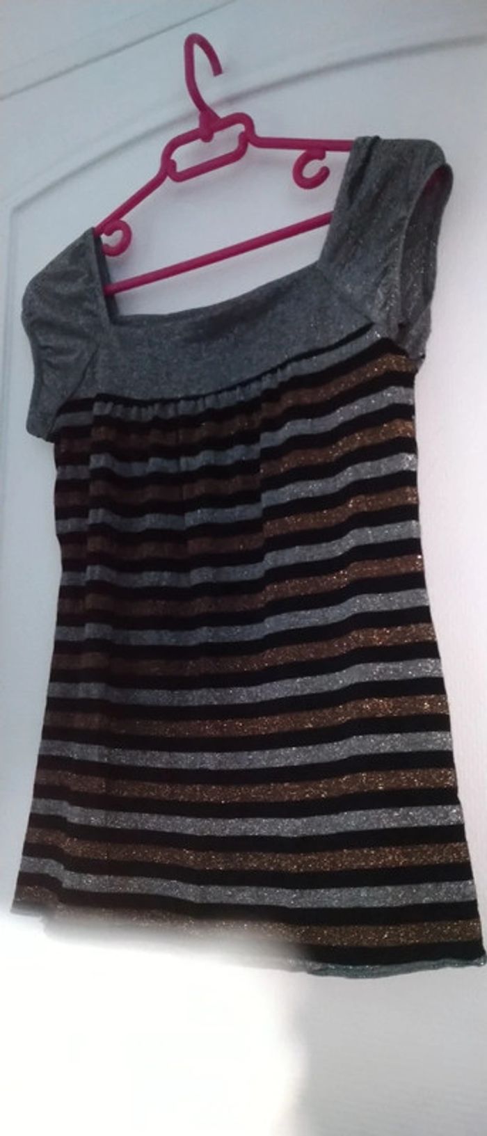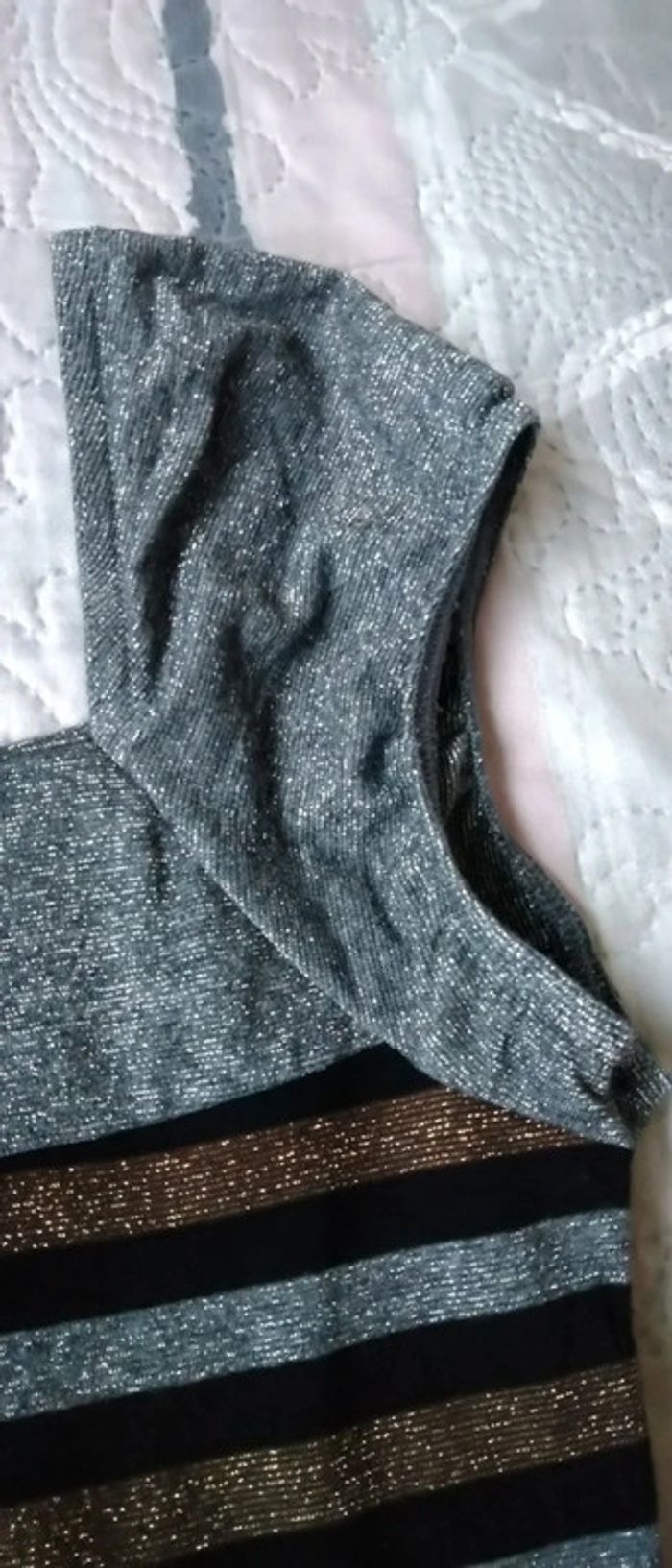 Haut lurex épaules dénudées en polyester et elasthanne rayures dorées argentées et noir longueur 62 cm largeur aisselles à aisselles 41 cm idéal pour les fêtes de fin d'année ou une soirée très peu porté en très bon état n hésitez pas à faire un lot dans mon dressing pour bénéficier d une réduction #midole #midolefemme38 #midolefemme #hautepaulesdenudees #hautlurex #hautàrayures #lurex #rayures #doré #argenté #femme3840 #femme38 #hautdefête #hautsoirée #kiabi