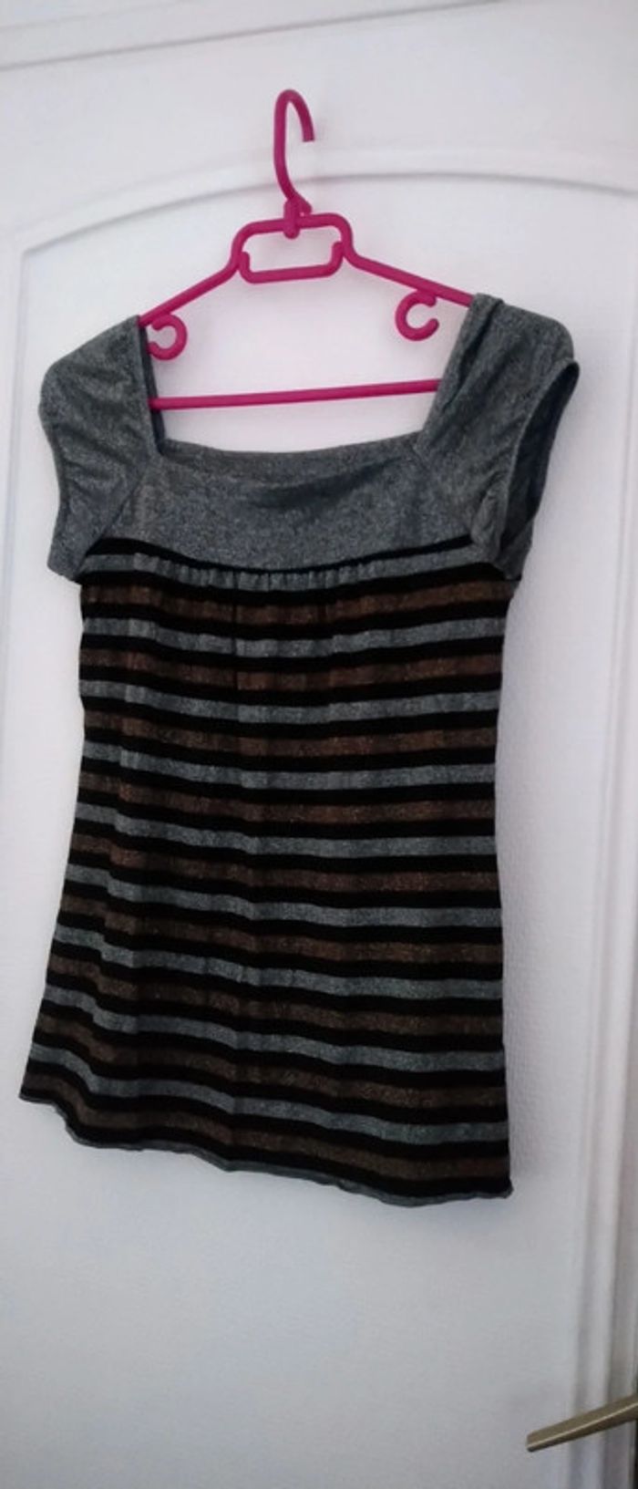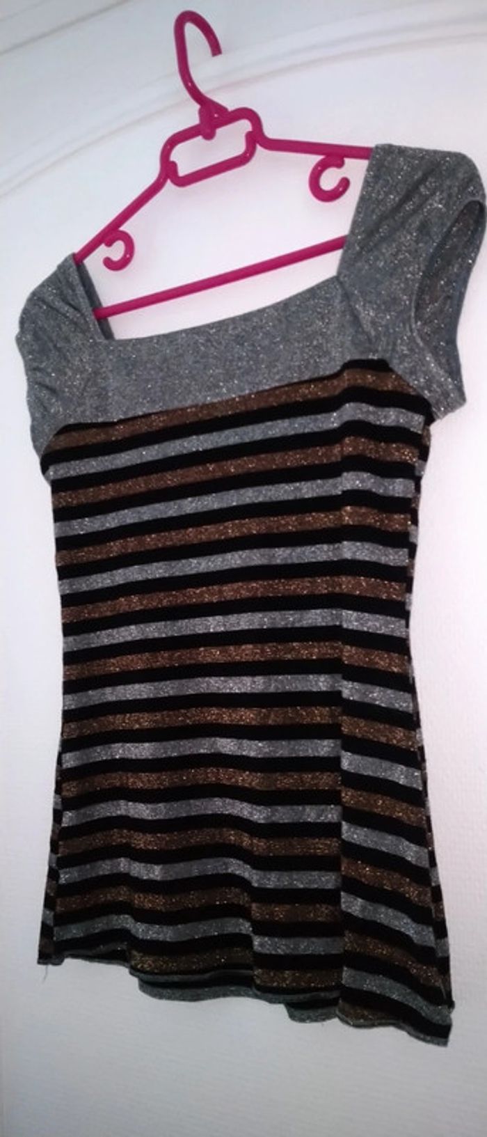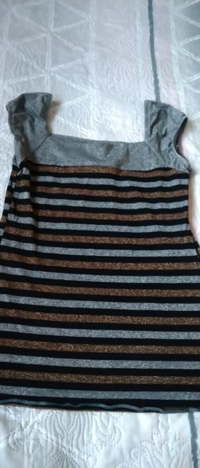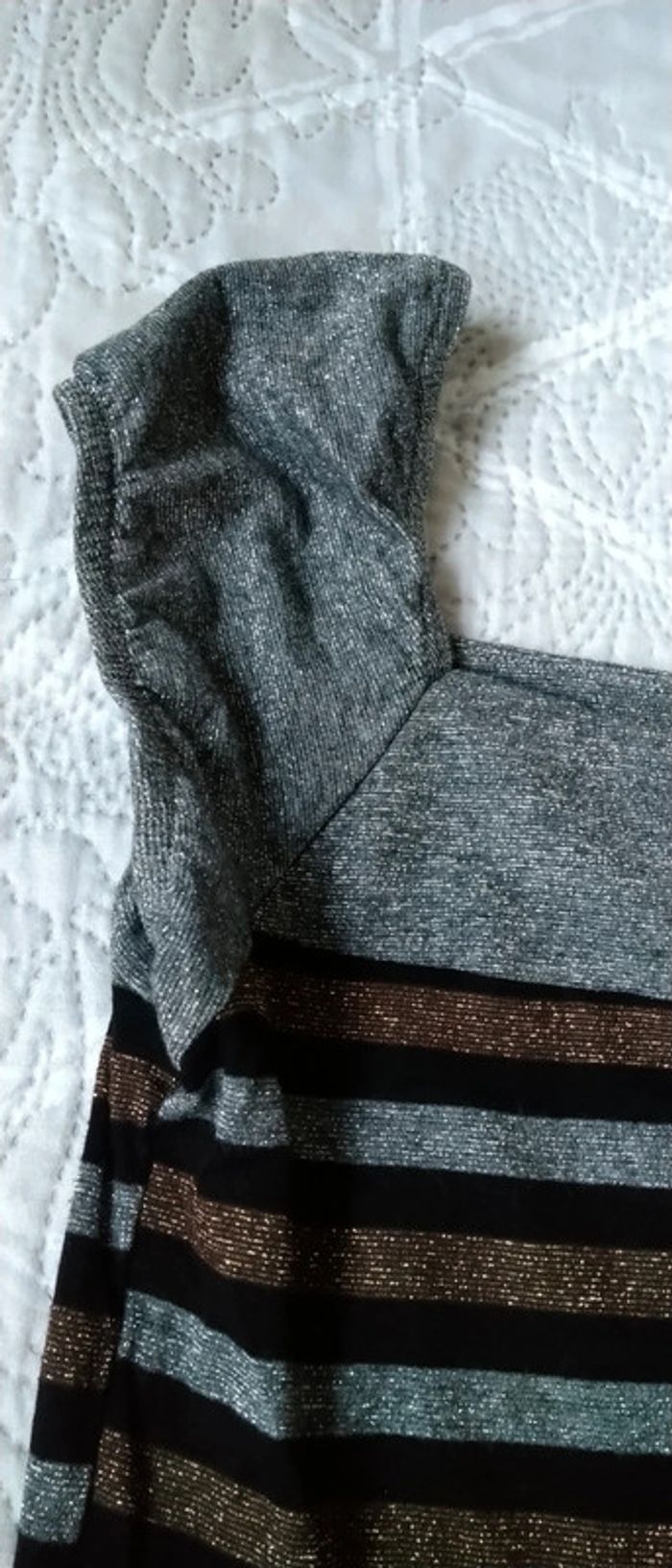 Haut lurex épaules dénudées en polyester et elasthanne rayures dorées argentées et noir longueur 62 cm largeur aisselles à aisselles 41 cm idéal pour les fêtes de fin d'année ou une soirée très peu porté en très bon état n hésitez pas à faire un lot dans mon dressing pour bénéficier d une réduction #midole #midolefemme38 #midolefemme #hautepaulesdenudees #hautlurex #hautàrayures #lurex #rayures #doré #argenté #femme3840 #femme38 #hautdefête #hautsoirée #kiabi