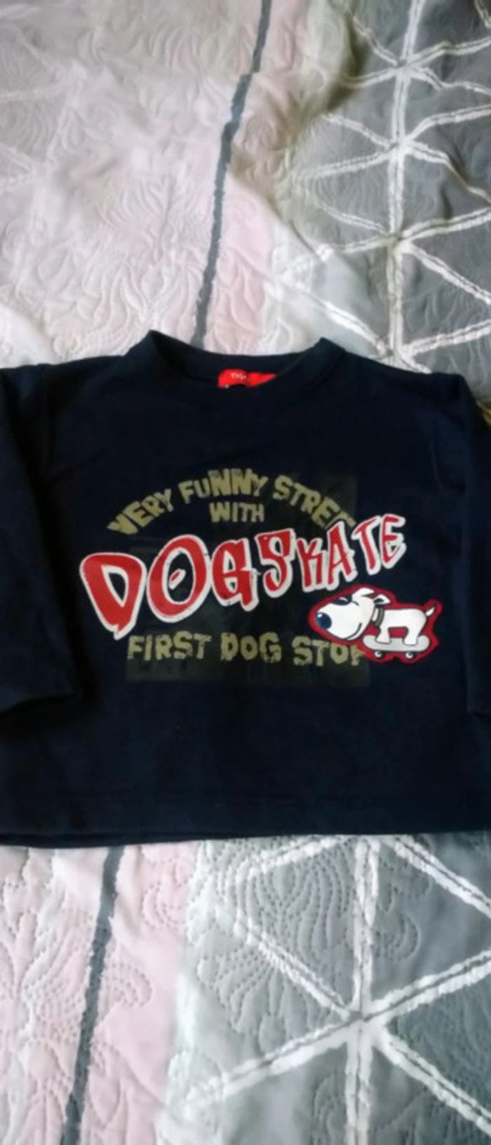 Sweat en coton et acrylique doublé polaire bien chaud pour l hiver motif chien sur un skate board flocage effet craquelé et usé porté quelques fois en bon état quelques très légères bouloches dues au lavage n hésitez pas à faire un lot dans mon dressing pour bénéficier d une réduction #midole #midoleenfant #midolegarçon #midolegarçon3ans #sweat #swetapolaire #skate #chien #garçon #garçon3ans #tissaia