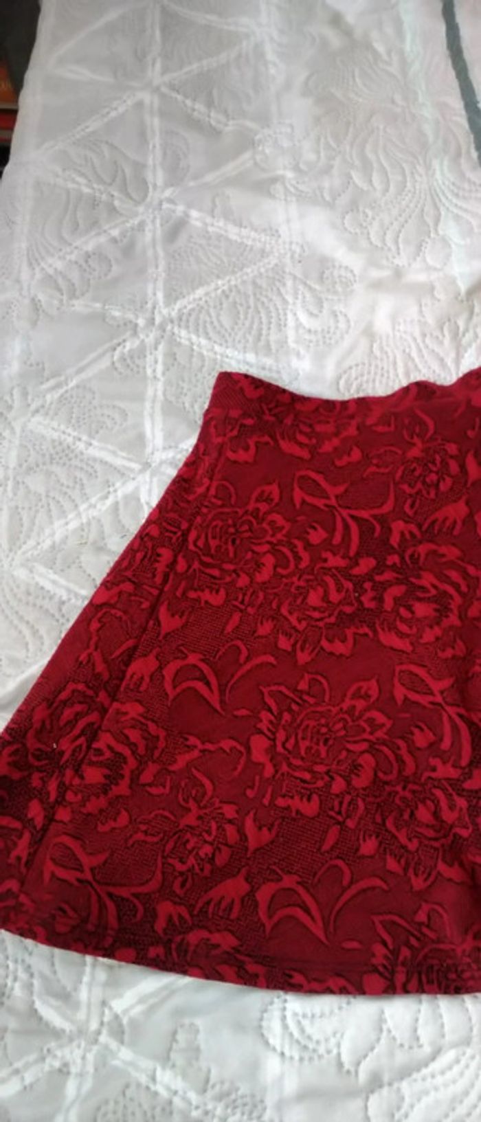 Jupe en polyester et elasthanne rouge et noir motif fleurs effet tapisserie taille coupe évasée effet volant élastique longueur 37 cm largeur taille 32 cm très peu portée en très bon état n hésitez pas à faire un lot dans mon dressing pour bénéficier d une réduction #midole #midolefemme #midolefemmexs #xs #34 #jupe #jupecourte #jupepatineuse #jupemotiffleuri #roses #forever21 #femmexs #rouge #tapisserie