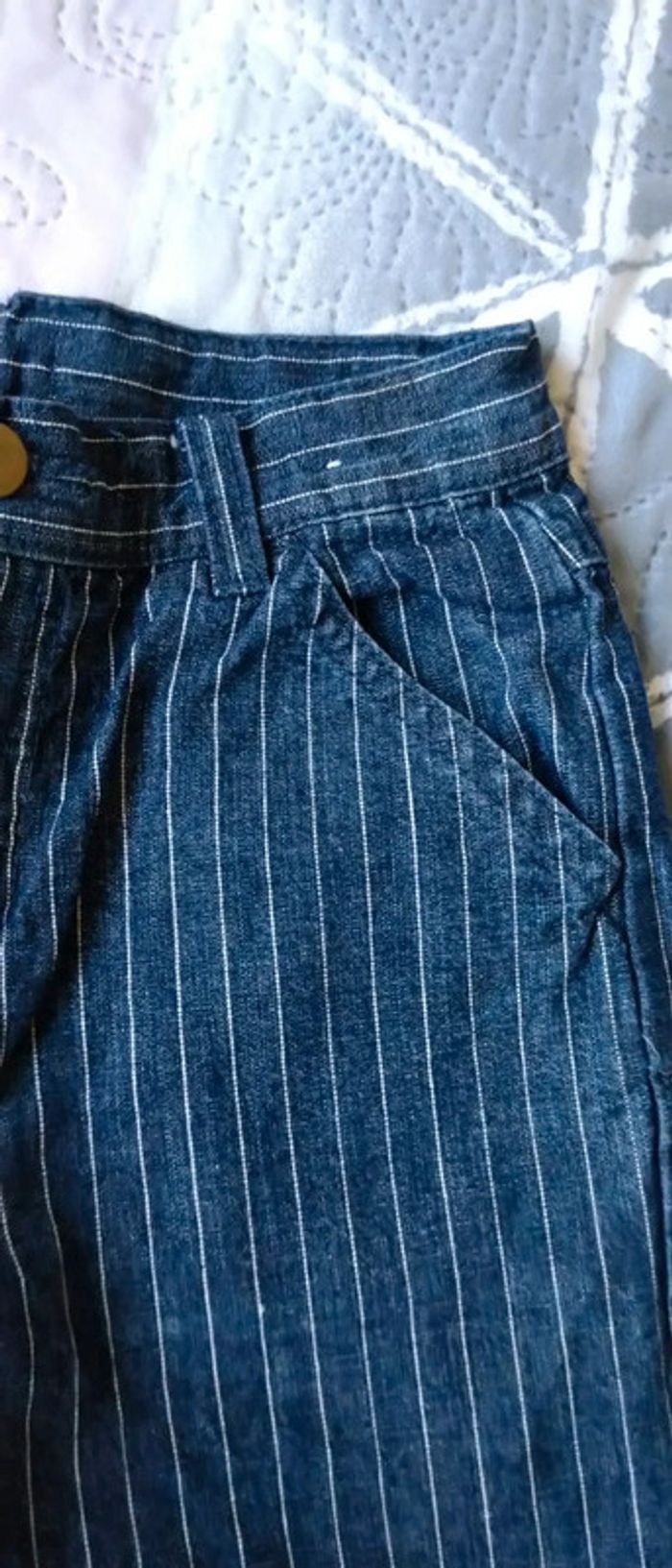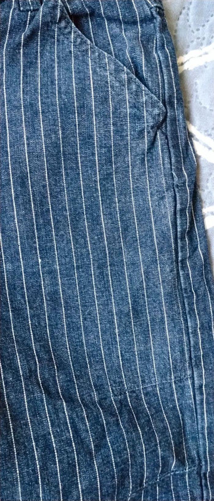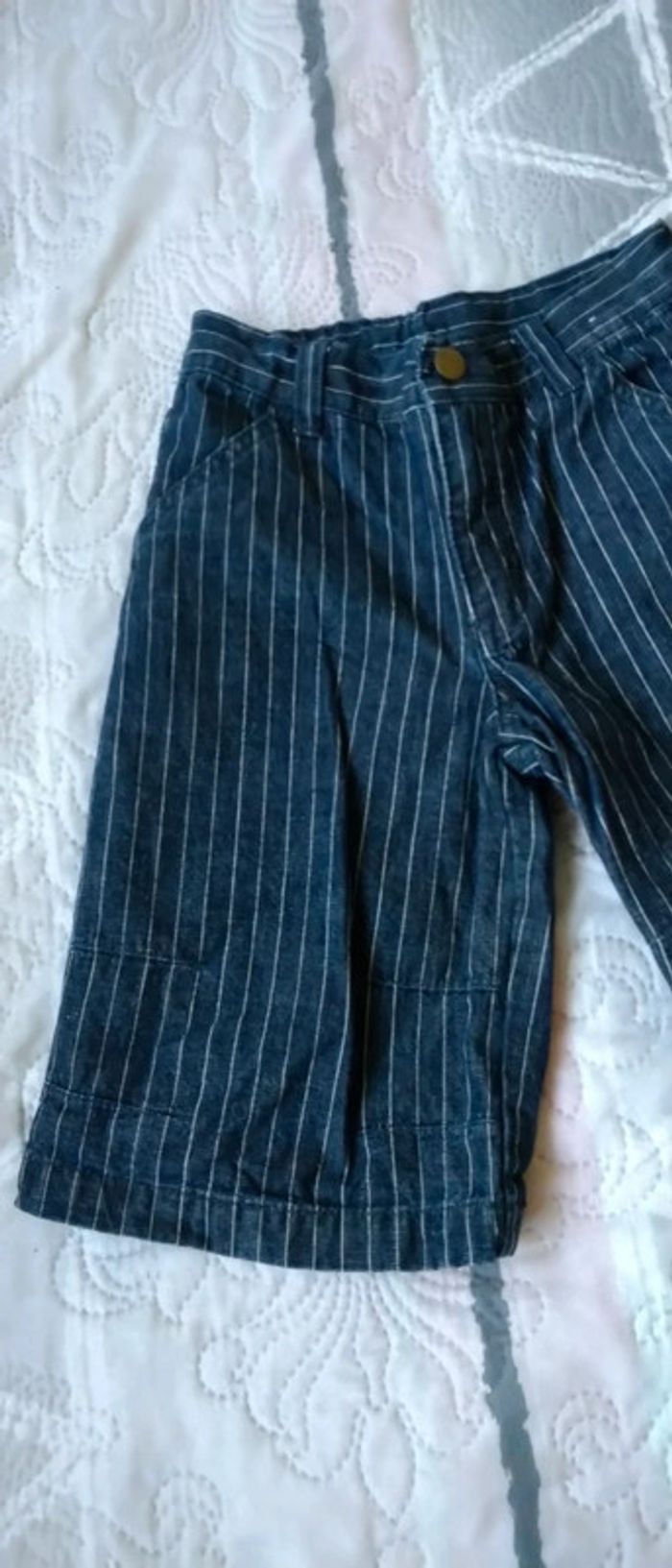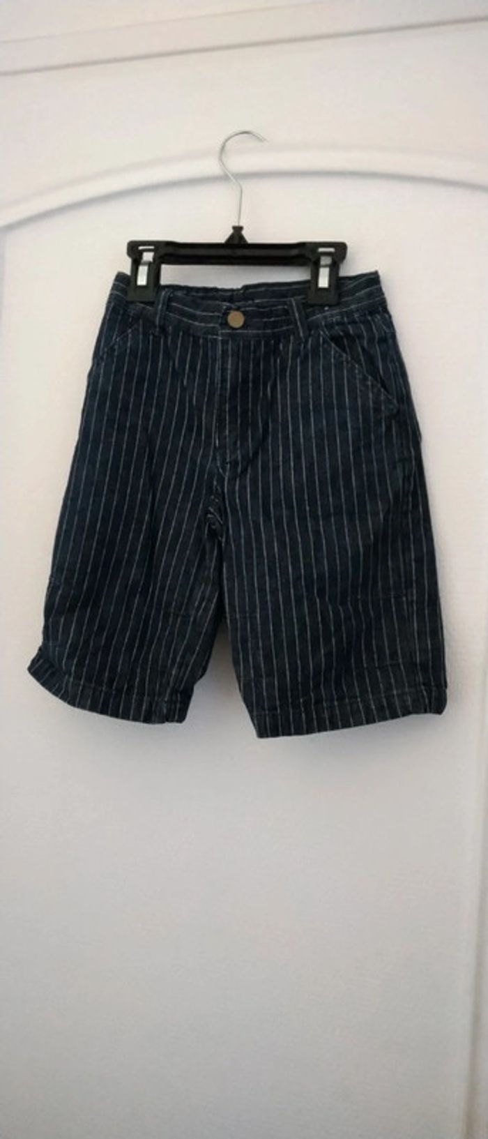 Pantalon en coton marine avec rayures blanches taille élastique ajustable coupe large longueur 39 cm largeur cuisses 20 cm juste porté une fois pour un mariage en très bon état comme neuf idéal pour une cérémonie ou Noël n hésitez pas à faire un lot dans mon dressing pour bénéficier d une réduction #midole #midoleenfant #midolegarçon #midolegarçon3ans #panracourt #pantalon #pantalonceremonie #pantalonfetes #ceremonie #noel #mariage #bapteme #milablue #vertbaudet #tailleajustable #garçon #garçon3ans #pantalonarayures
