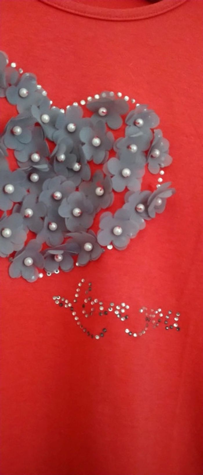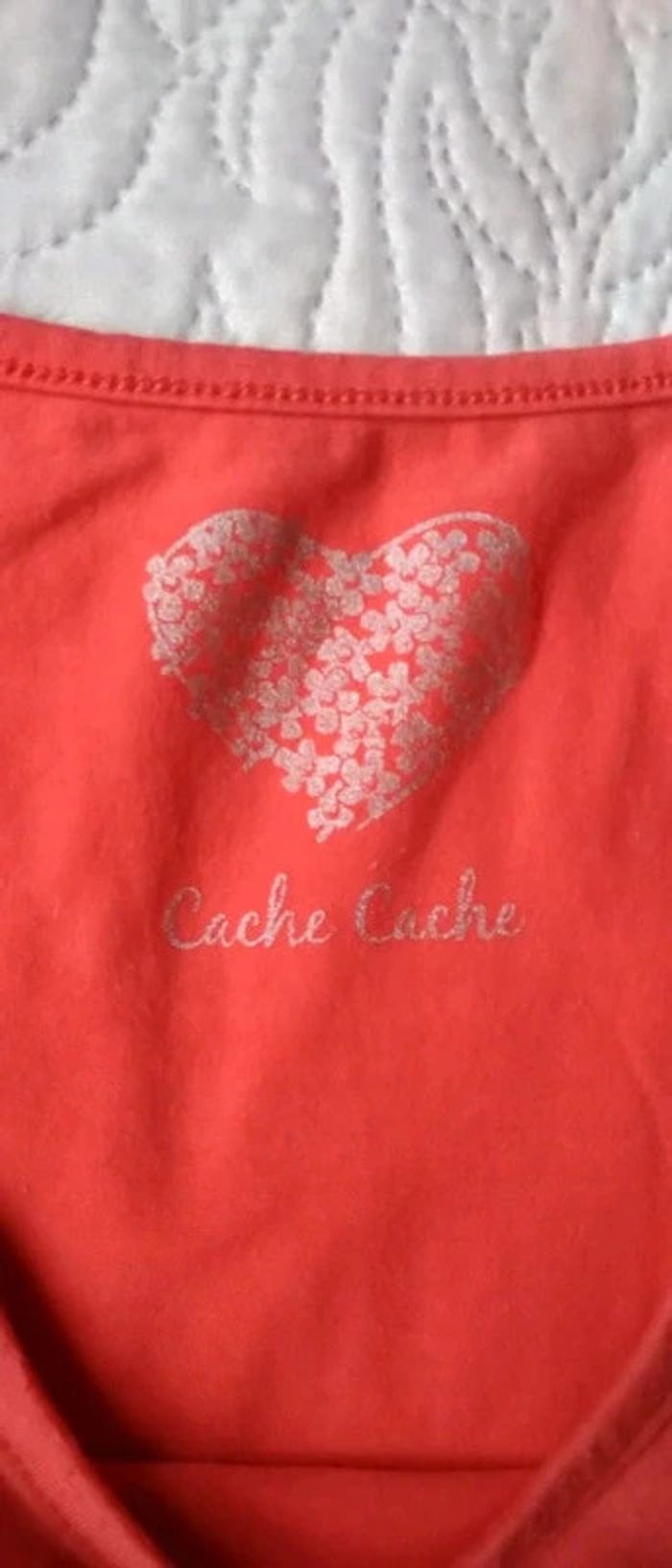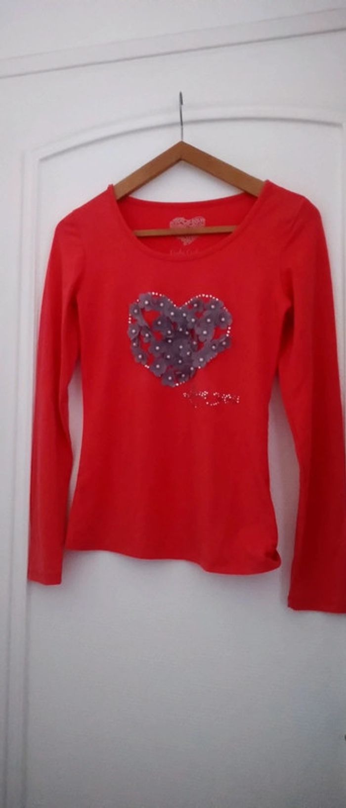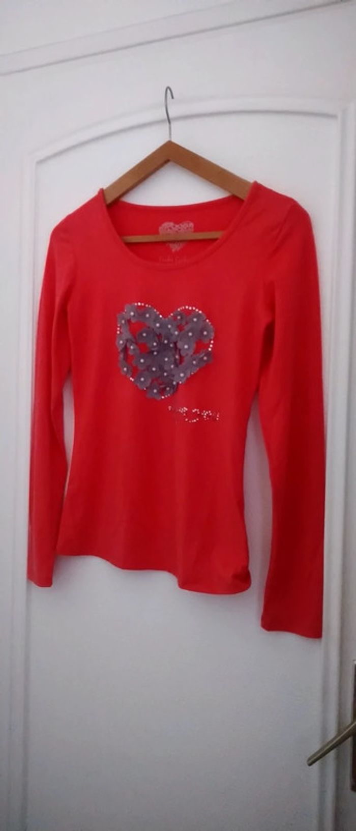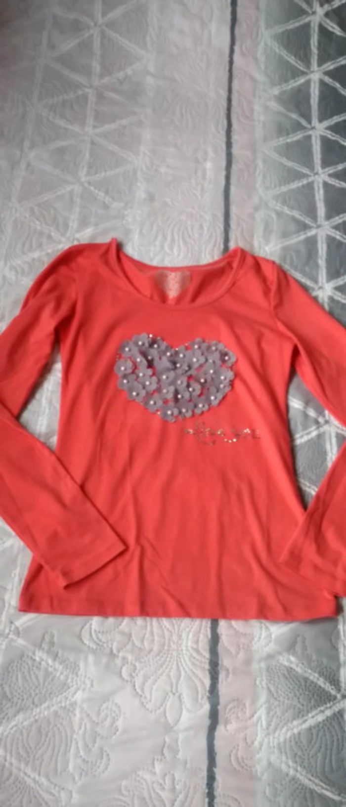 Tee-shirt cœur fleurs et perle corail femme 38 cache cache