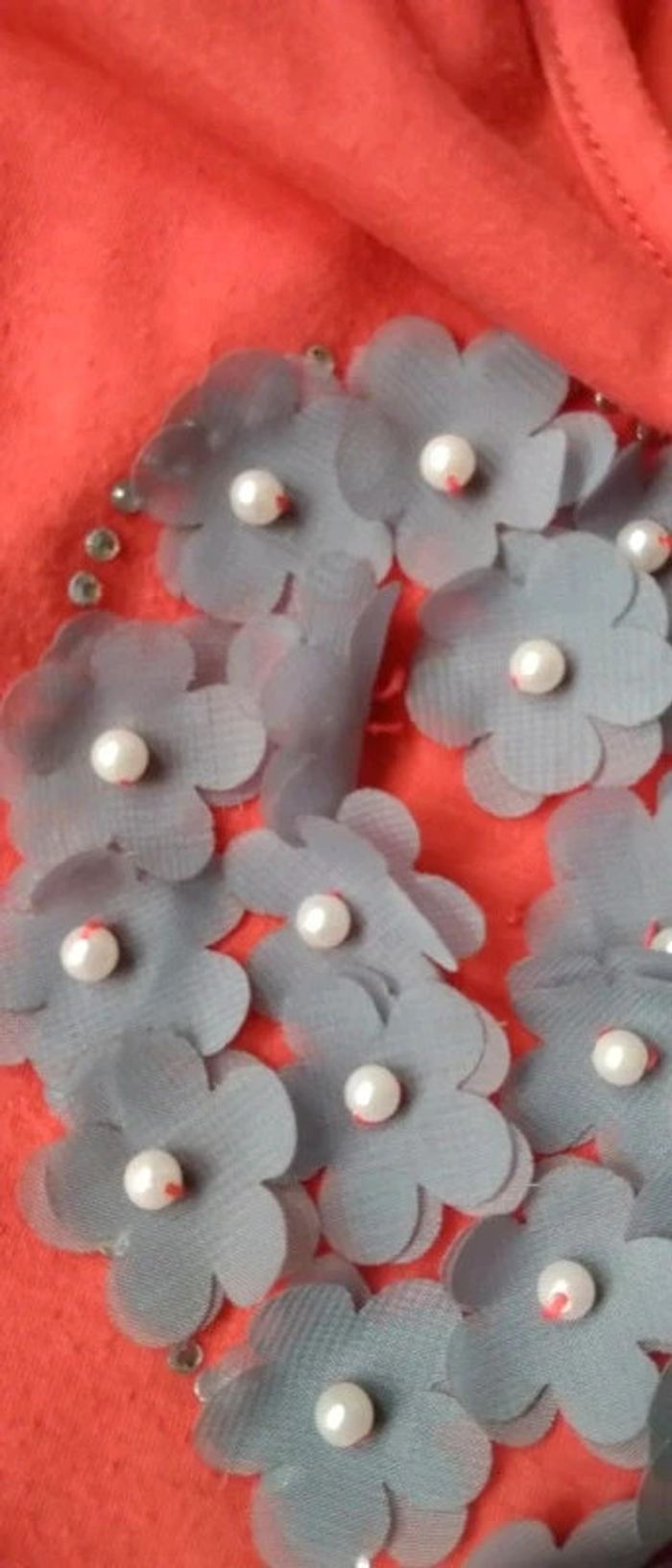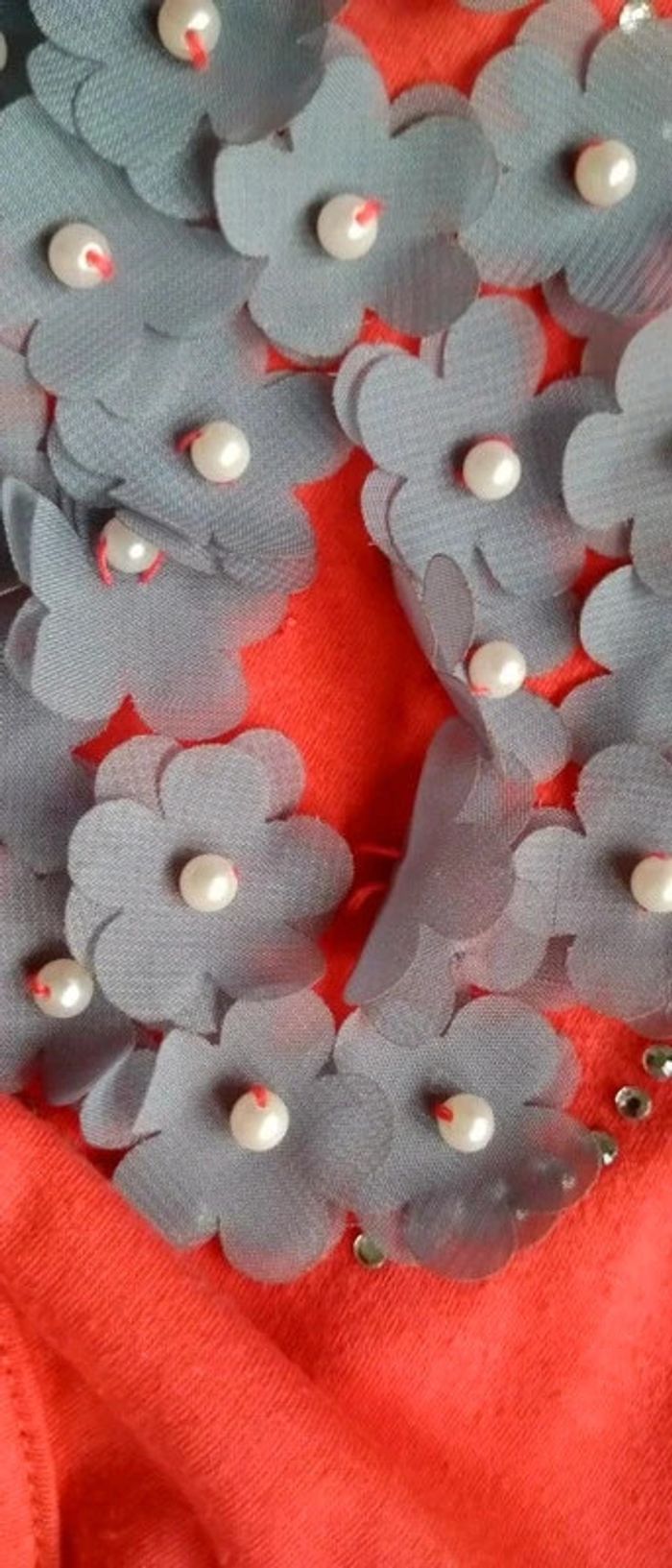 Tee-shirt cœur fleurs et perle corail femme 38 cache cache - photo numéro 10