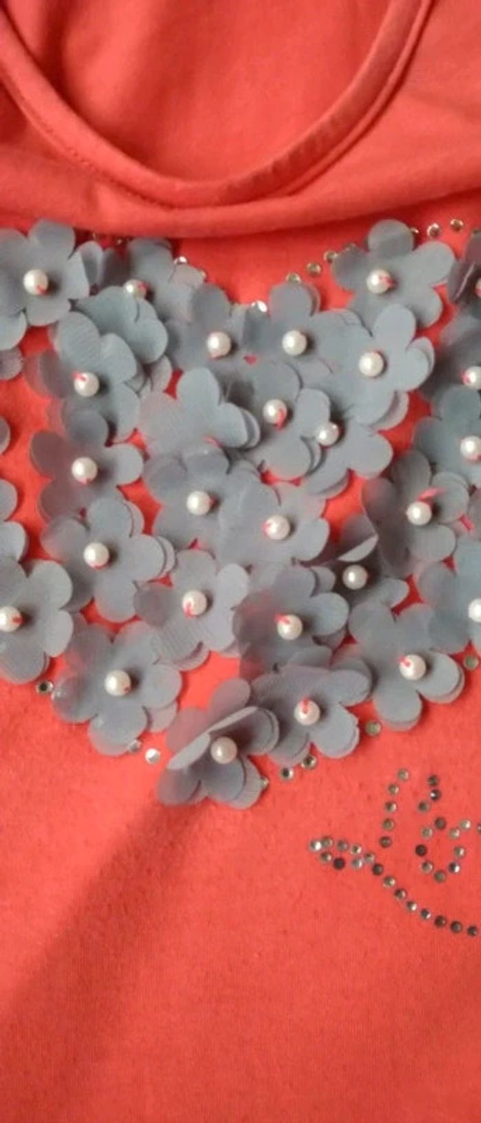 Tee-shirt cœur fleurs et perle corail femme 38 cache cache - photo numéro 9