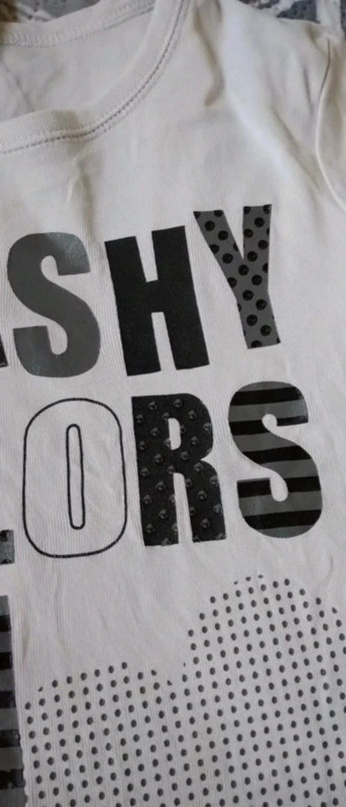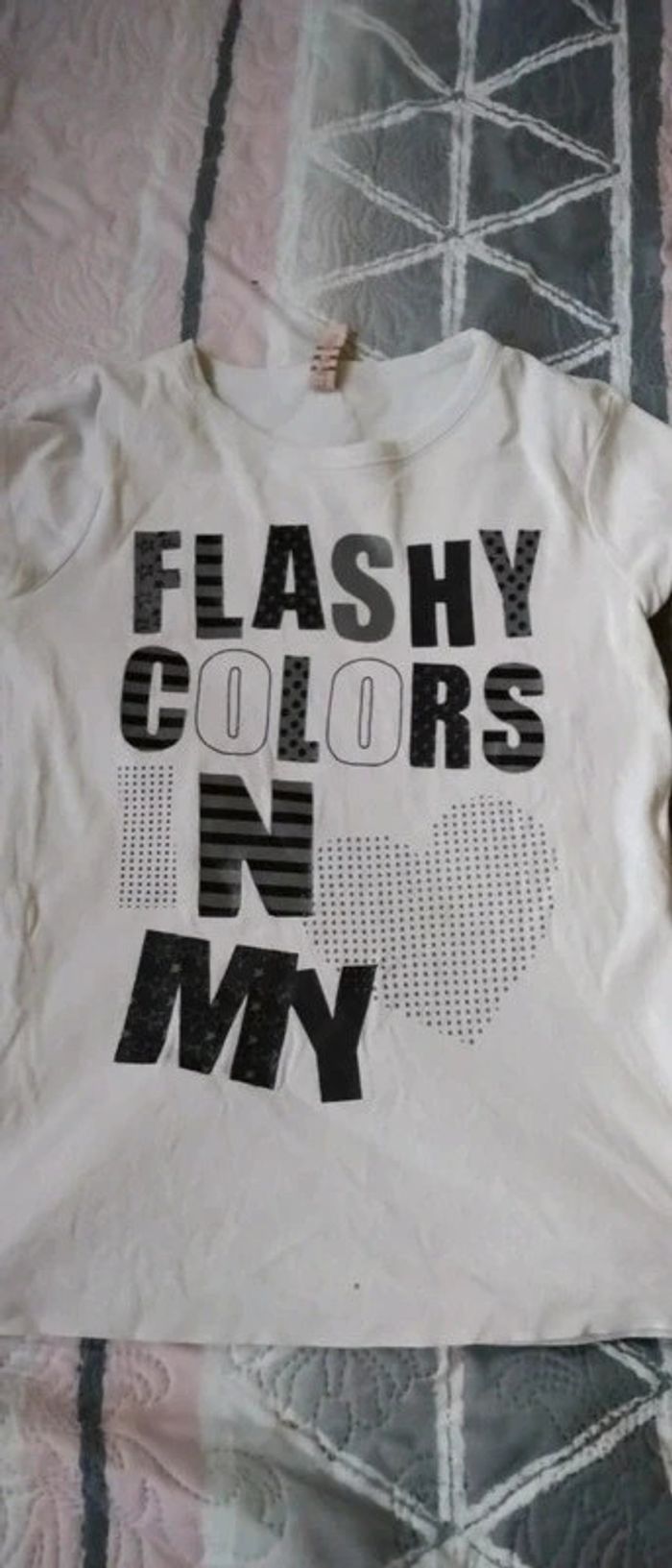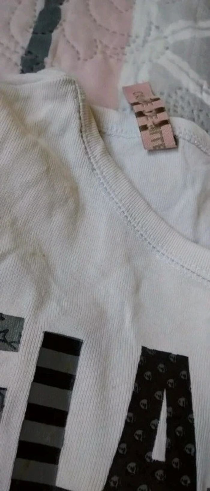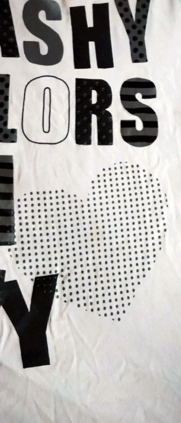 Tee-shirt manches courtes en coton motif cœur et texte gris clair blanc et noir porté quelques fois en bon état satisfaisant quelques tâches sur le devant (voir dernières photos) n hésitez pas à faire un lot dans mon dressing pour bénéficier d une réduction #midole #midoleenfant #midolefille14ans #midolefille #teeshirtmanchescourtes #fille14ans #capricedefille