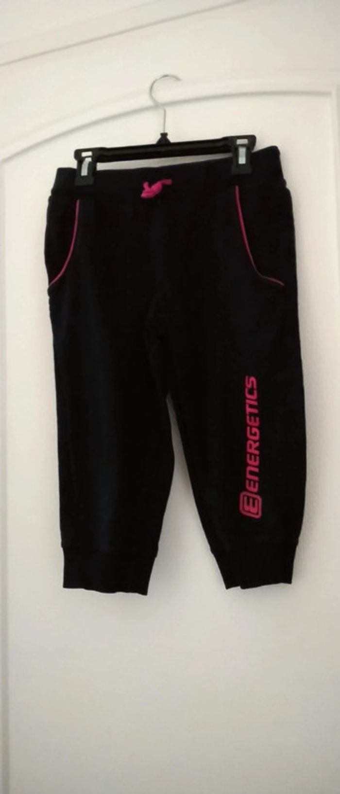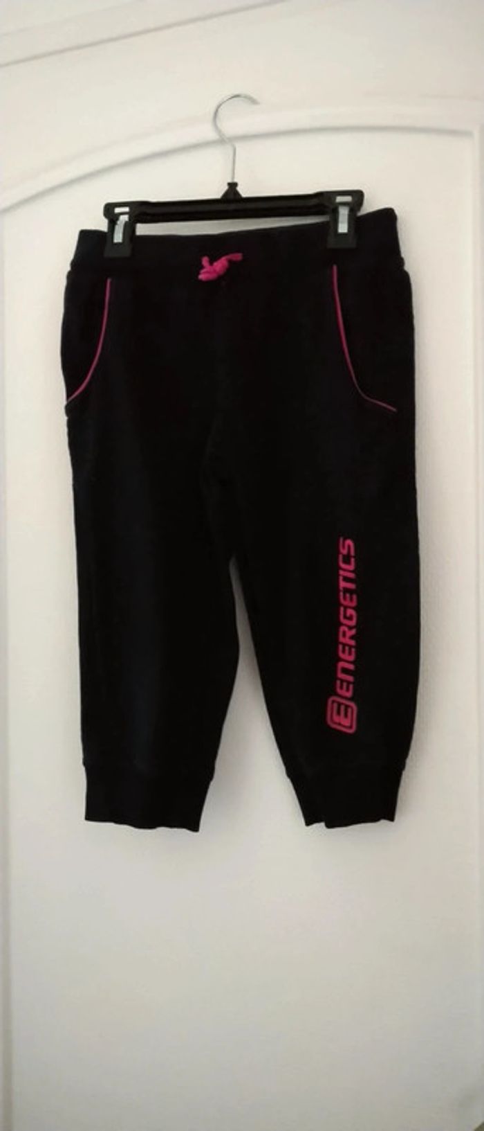 Pantalon de sport 3/4 longueur 57 cm en molleton taille élastique avec cordon de resserage poches devant bas resserré logo energetics en rose sur une jambe très peu porté en très bon état n hésitez pas à faire un lot dans mon dressing pour bénéficier d une réduction #midole #midoleenfant #midolesport #midolefille #midolefille10ans #pantalondesport #pantacourtdesport #energetics #sport #pantalonenergetics #fille #fille10ans #fillesport #noir #rose