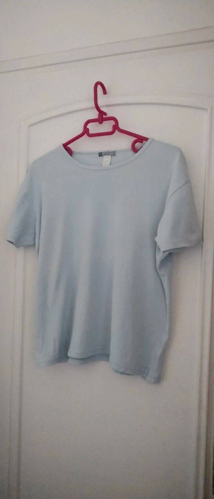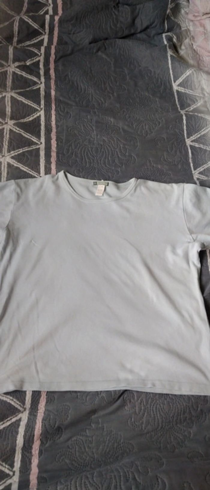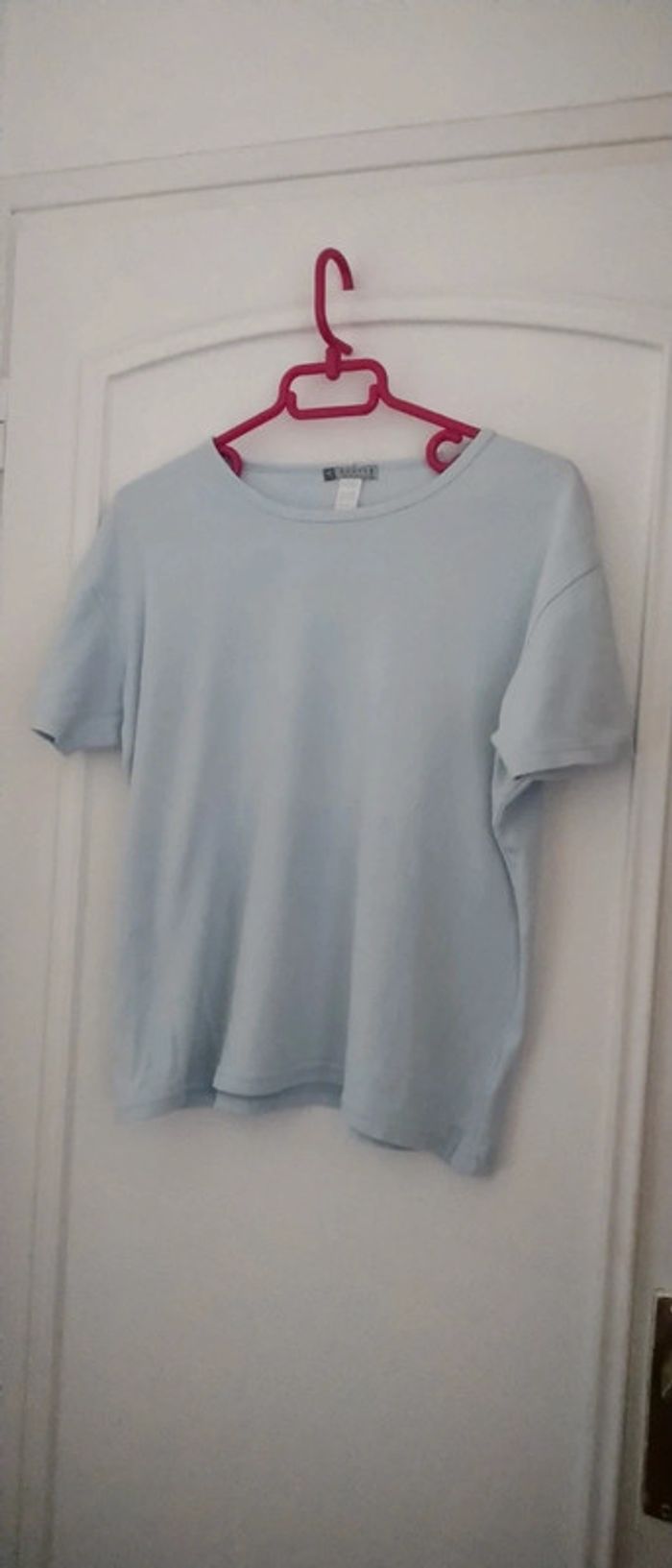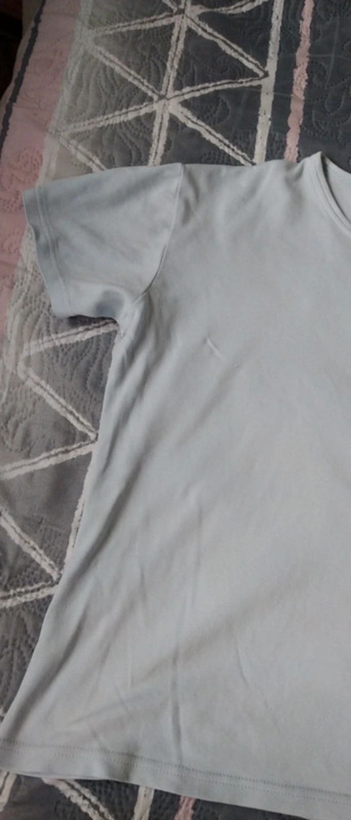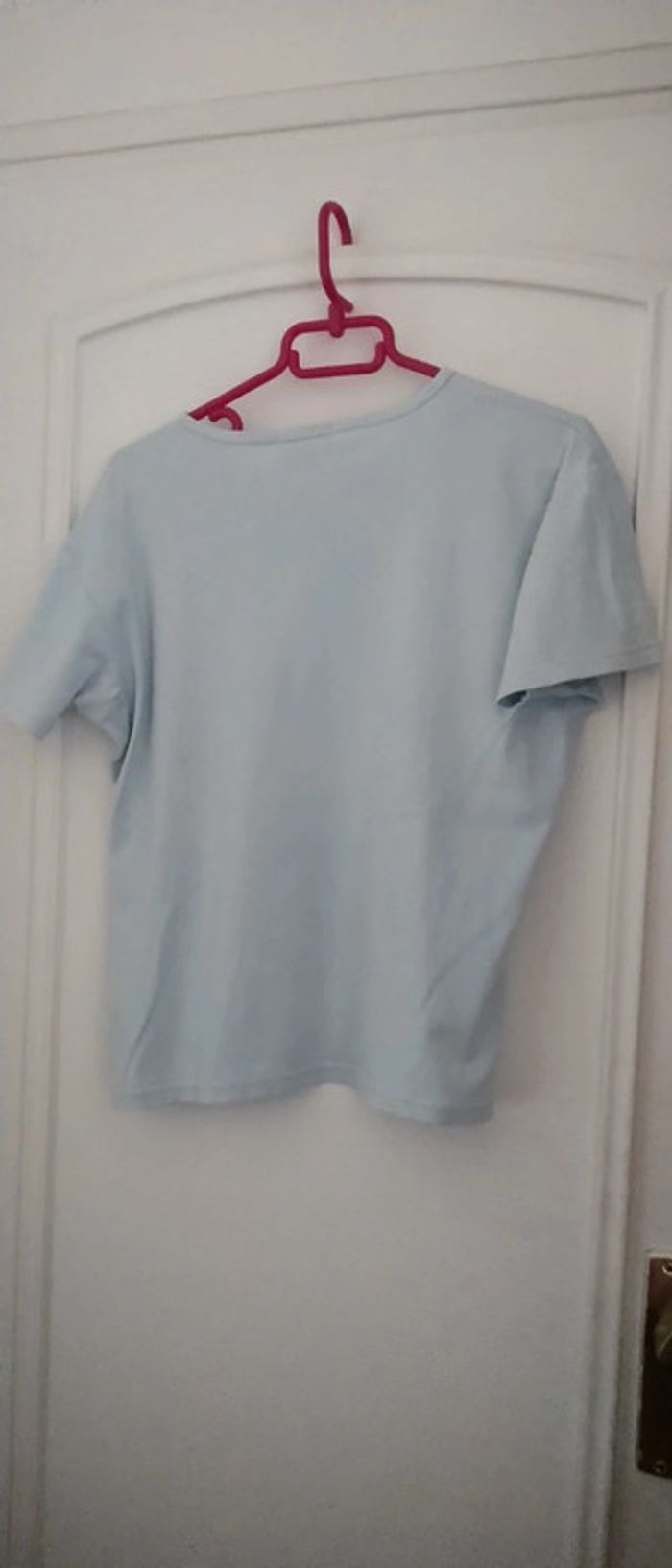 Tee t-shirt manches courtes en coton col rond coupe large couleur bleu clair longueur 56 cm largeur aisselles à aisselles 56 cm largeur épaules 47 cm peu porté en très bon état à part une petite trace d épingle à linge (voir dernières photos) n hésitez pas à faire un lot dans mon dressing pour bénéficier d une réduction #midole #midoleete #midolesport #midolefemme44 #tee-shirt #hautdesport #tee-shirtdesport #domyos #decathlon #bleu #sport #vetementdesportfemme #femme44