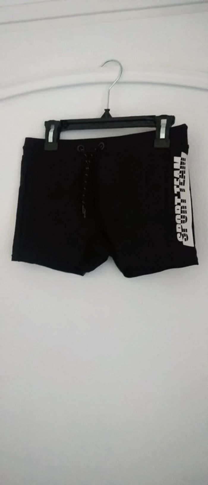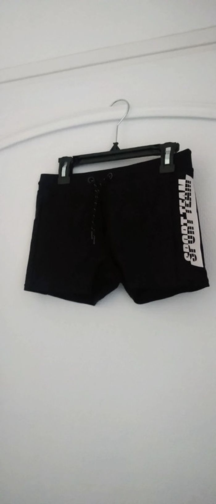 Boxer de bain noir avec flocage blanc sport team et 85 sur les côté taille élastique avec lien de resserage juste porté une ou deux fois en très bon état juste le nom de mon fils sur l étiquette qui peut être coupée n hésitez pas à faire un lot dans mon dressing pour bénéficier d une réduction #midole #midoleete #midoleenfant #midolegarçon14ans #midolehomme #midolehommexs #maillotdebain #boxerdebain #noir #laredoute #xs #natation #piscine