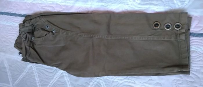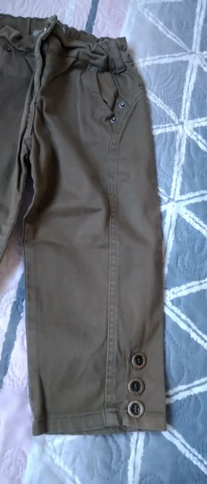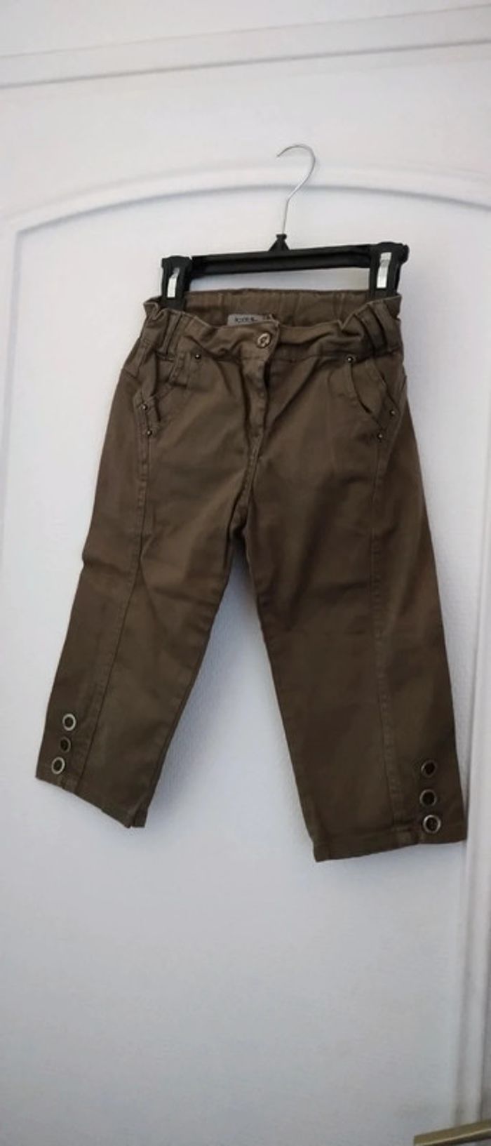 Pantacourt en coton et elastanne longueur 51 cm largeur cuisses 20 cm largeur bas de jambe 15 cm taille élastique ajustable poches devant et derrière boutons au bas des jambes juste porté une fois ou deux en très bon état comme neuf n hésitez pas à faire un lot dans mon dressing pour bénéficier d une réduction #midole #midoleete #midoleenfant #midolefille8ans #midolefille #fille8ans #pantacourt #tapealoeil #pantalonfille8ans #kaki