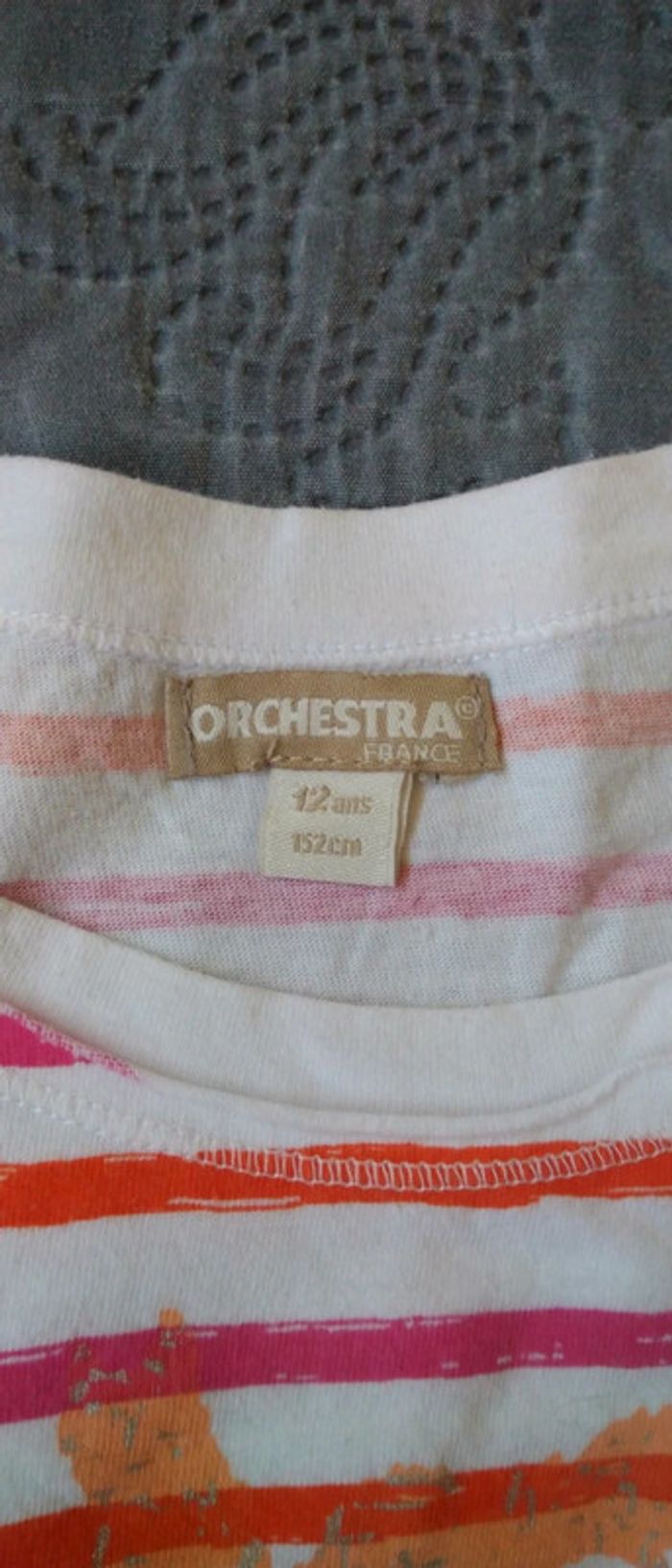 Tee shirt à rayures avec texte en clou rose fille 12 ans orchestra - photo numéro 9