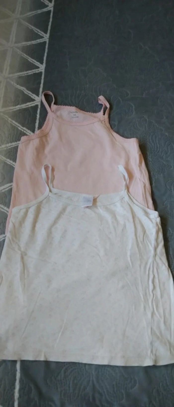 Lot deux hauts maillot de corps à fines bretelles en coton un rose uni et un blanc avec motif fleurs le rose est en bon état juste quelques bouloches dues au lavage le deuxième est dans un état satisfaisant couleurs délavées et défaut au niveau du nœud n hésitez pas à faire un lot dans mon dressing pour bénéficier d une réduction #midole #midoleenfant #midolete #midolefille10ans #caraco #maillotdecorps #sousvetements #filleété #fille10ans #kiabi