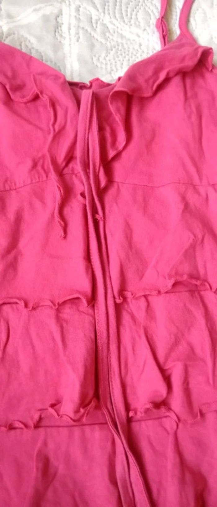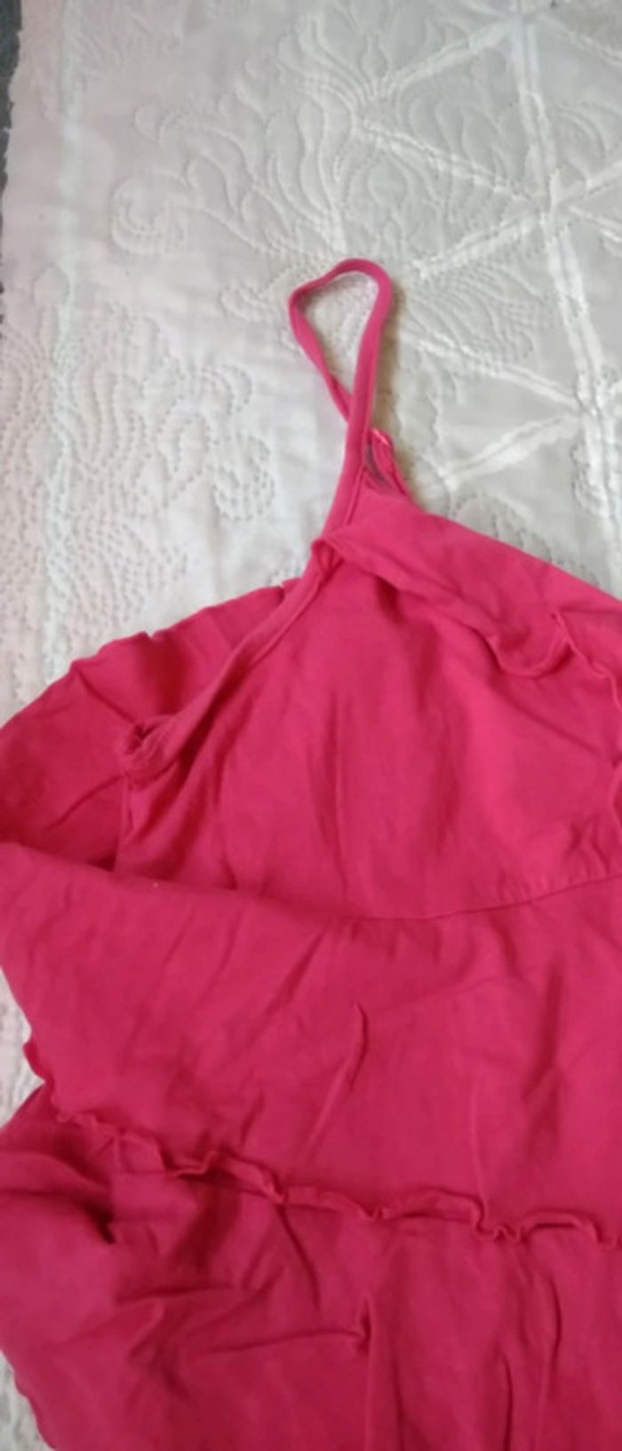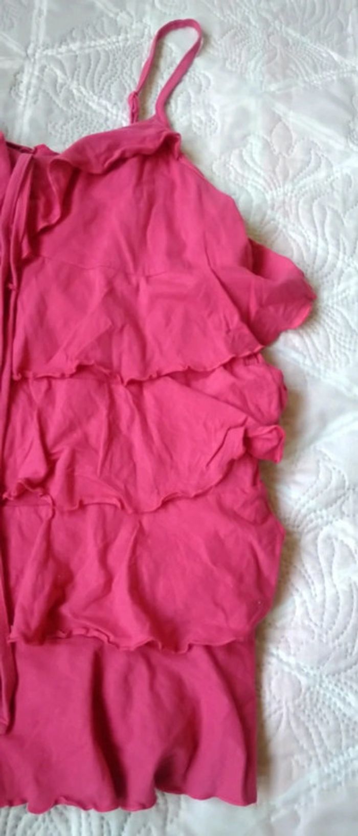 Haut à bretelles avec volants fuschia neuf femme 42/44 blanche porte - photo numéro 9