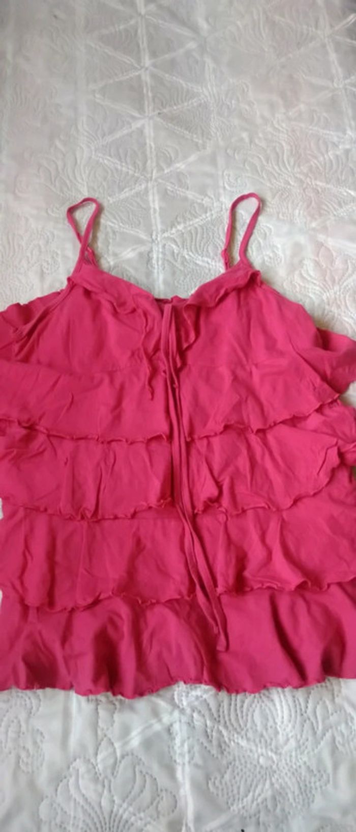 Haut à bretelles avec volants fuschia neuf femme 42/44 blanche porte - photo numéro 2