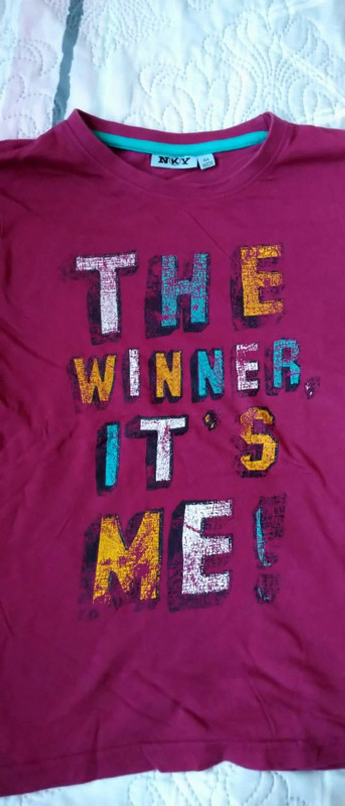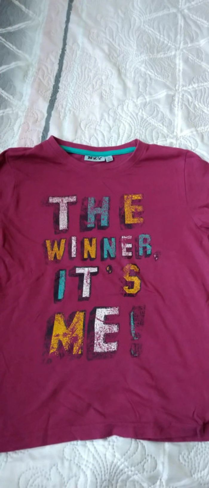 Tee shirt imprimé en coton léger texte the winner it s me porté quelques fois en très bon état juste un peu chiffonné n hésitez pas à faire un lot dans mon dressing pour bénéficier d une réduction #midoleenfant #midole #midoleété #midolegarçon10ans #teeshirt #teeshirtimprimé #thewinner #garçon #garçonété #garçon10ans #nky