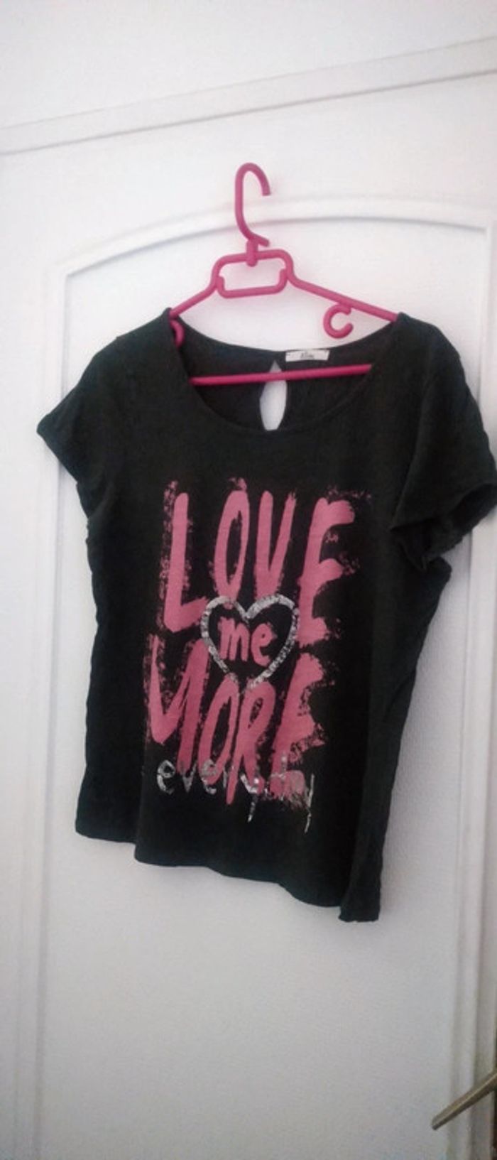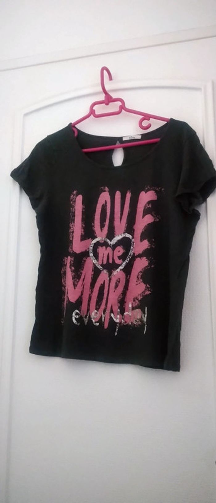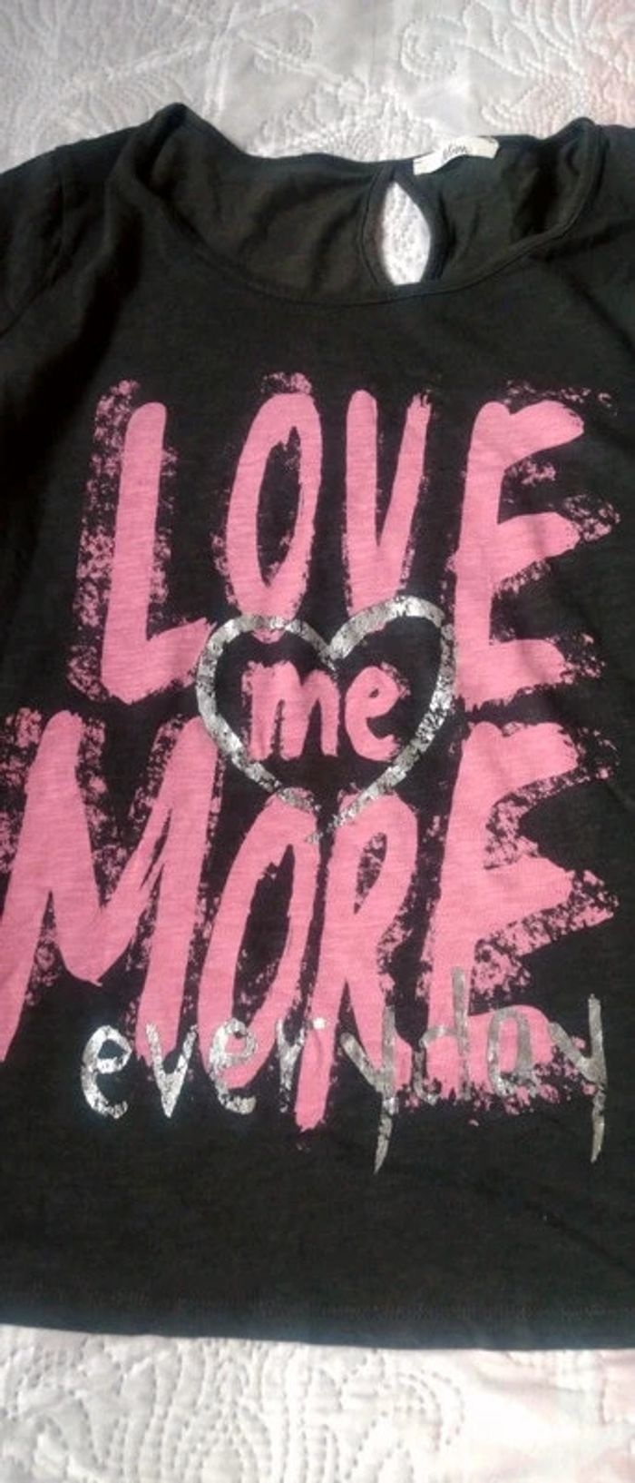 Tee shirt manches courtes coupe ample en coton léger gris anthracite avec texte love me more everyday en rose avec cœur argenté effet usé et effacé taille L correspond à un 40/42 Porté quelques fois en très bon état n hésitez pas à faire un lot dans mon dressing pour bénéficier d une réduction #midole #midolefemme #midolefemmeL #midolefemme40 #midoleété #mim #teeshirtmanchescourtes #teeshirt #femmeété #femmeL #coeur #love #gris #rose