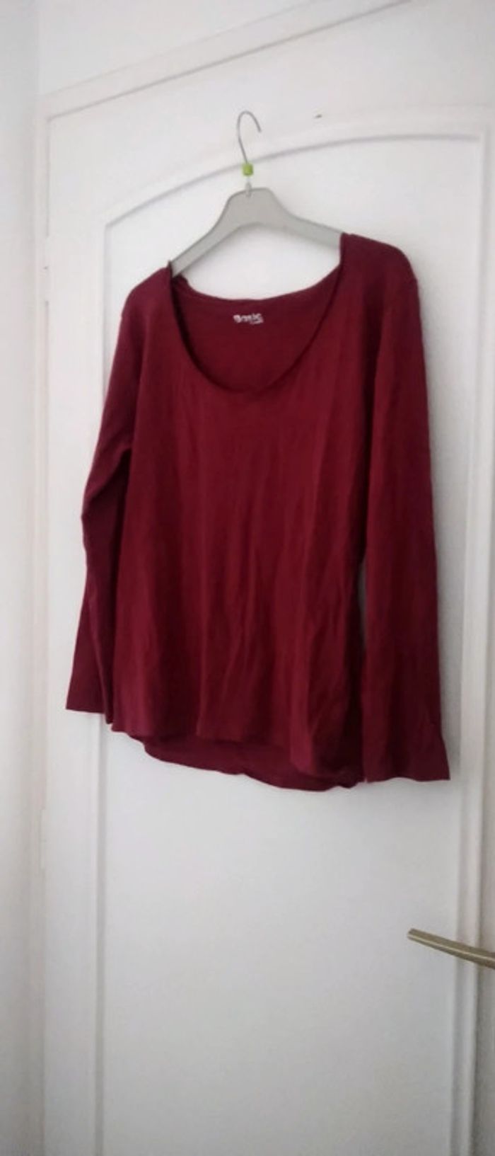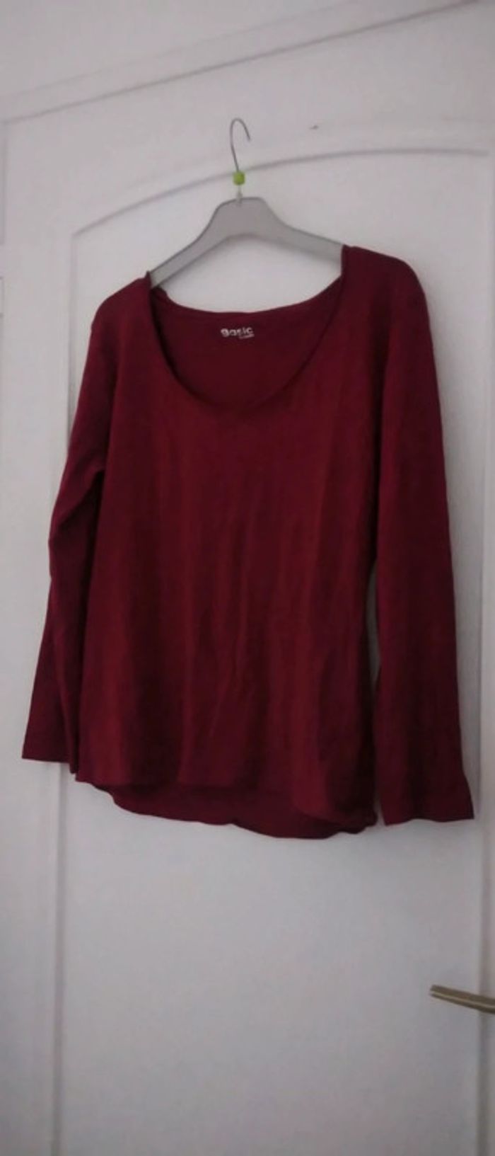 Haut manches longues col V en coton et elastanne stretch moulant et extensible juste porté une ou deux fois en excellent état comme neuf taille L correspondant à un 40 taille petit longueur 56 cm largeur aisselles à aisselles 48 cm largeur épaules à épaules 44 cm n hésitez pas à faire un lot dans mon dressing pour bénéficier d une réduction #midole #midolefemme40 #midolefemme #haut40 #hautfemme #basique #mim #L #rose #framboise
