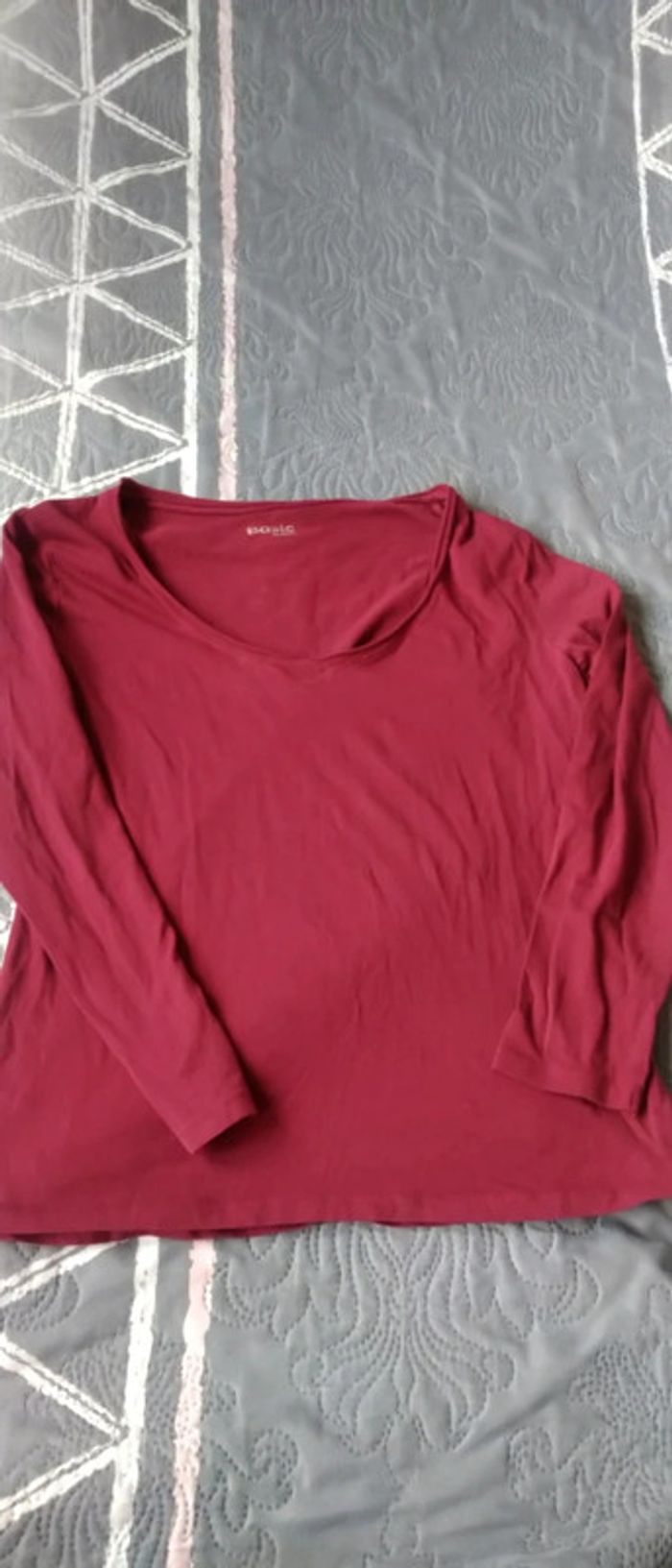 Haut basique col V framboise femme L mim - photo numéro 4
