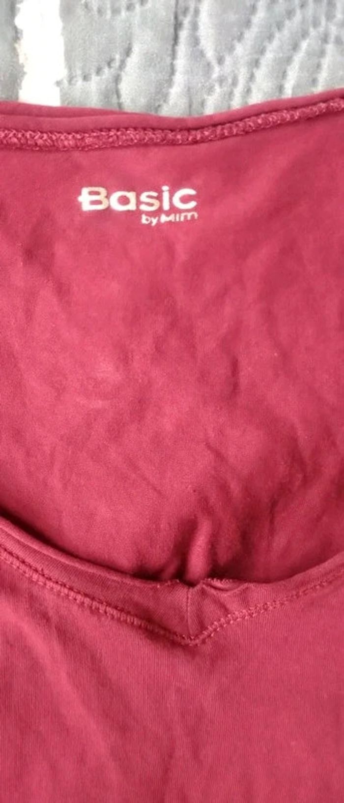 Haut basique col V framboise femme L mim