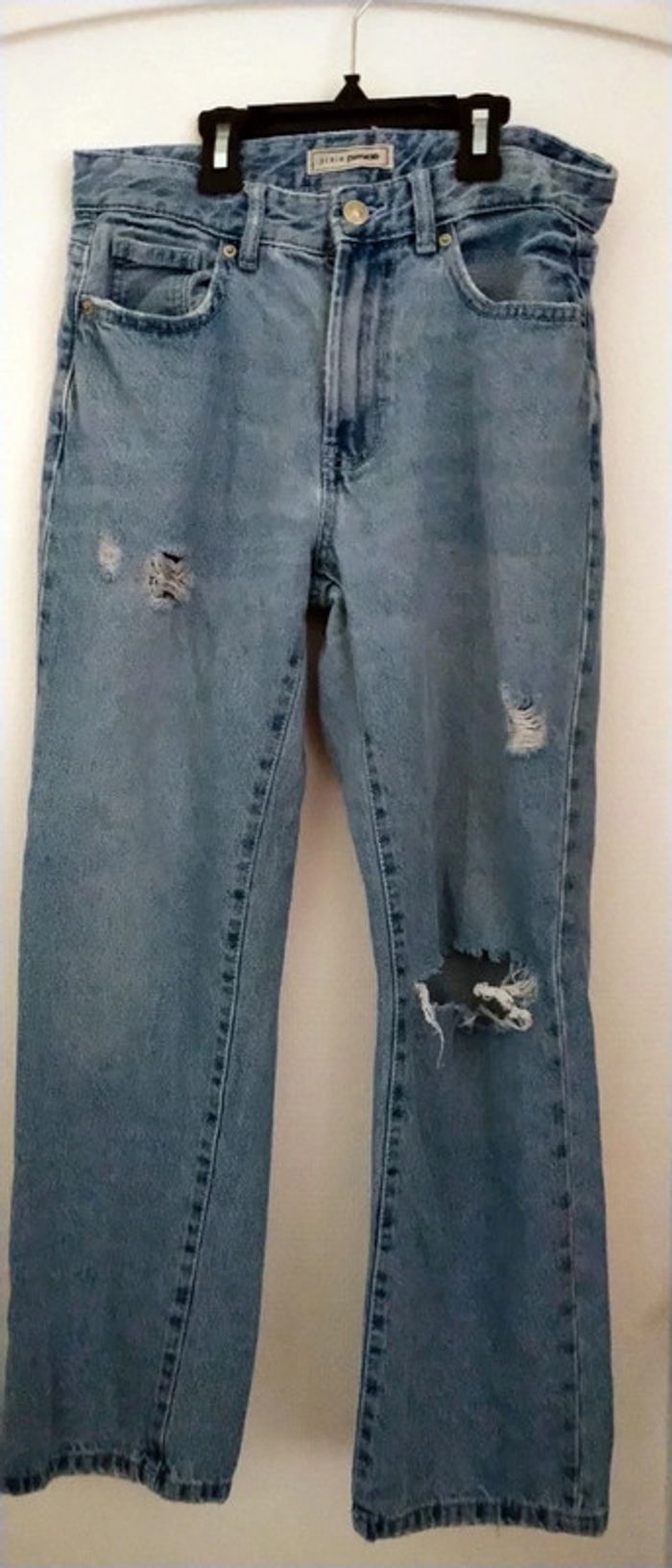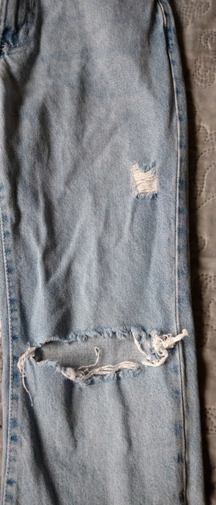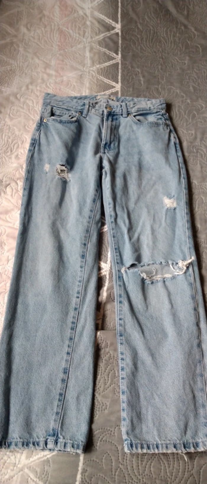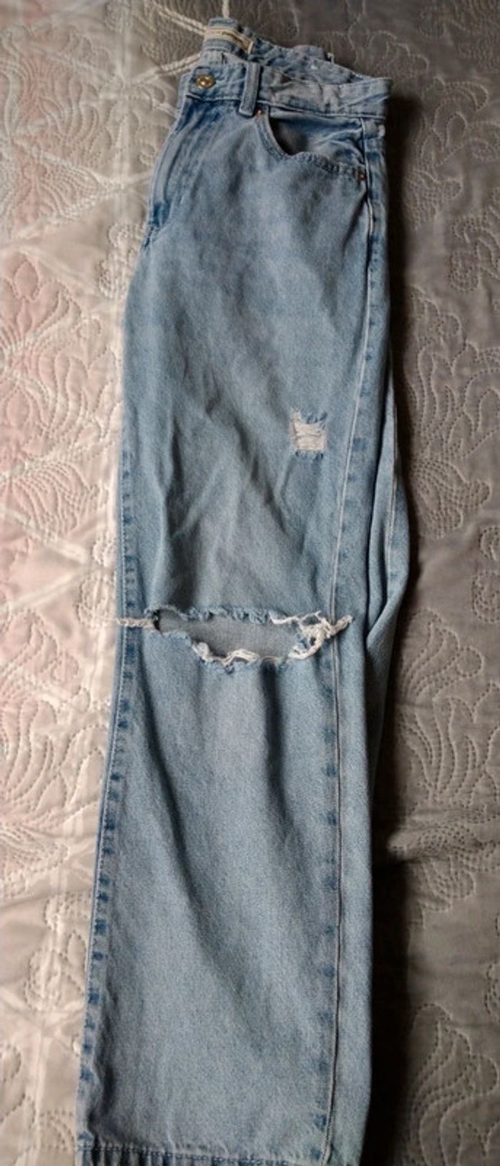 Jean coupe droite effet usé délavé destroy avec trous bleu clair taille 34 correspond à un xs 14 ans porté quelques fois en bon état à part quelques fils tirés au bas des jambes (voir dernières photos) n hésitez pas à faire un lot dans mon dressing pour bénéficier d une réduction #midolefemme #midole #midolefille #midolefemmexs #jean #jeandestroy #jeantroué #pimkie #fillexs #fille14ans