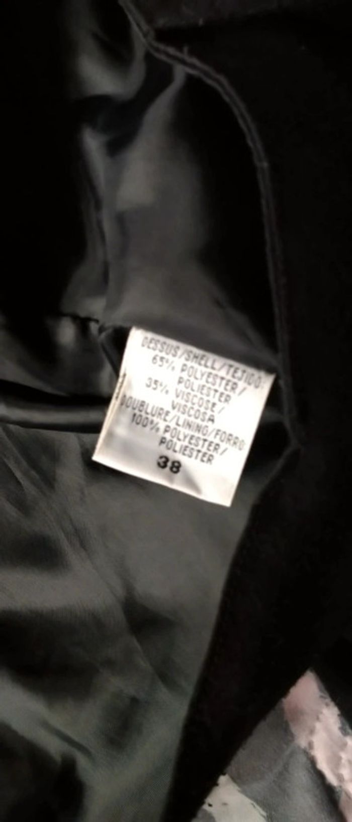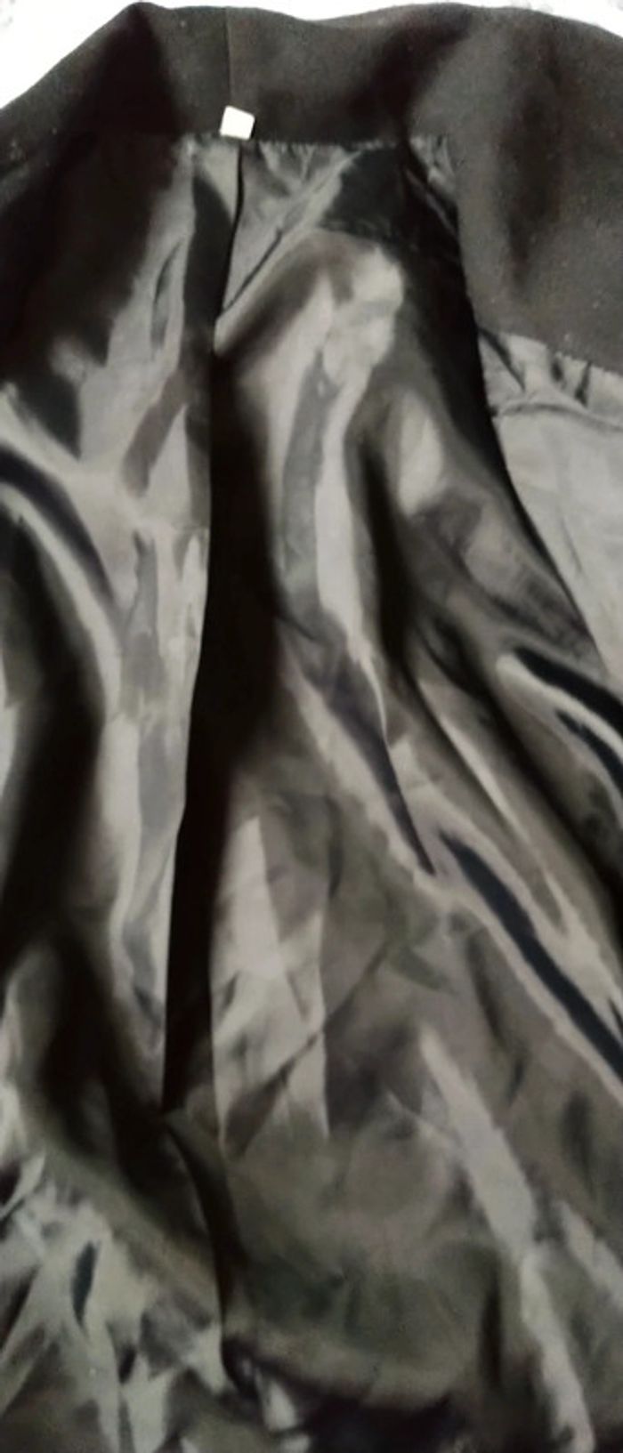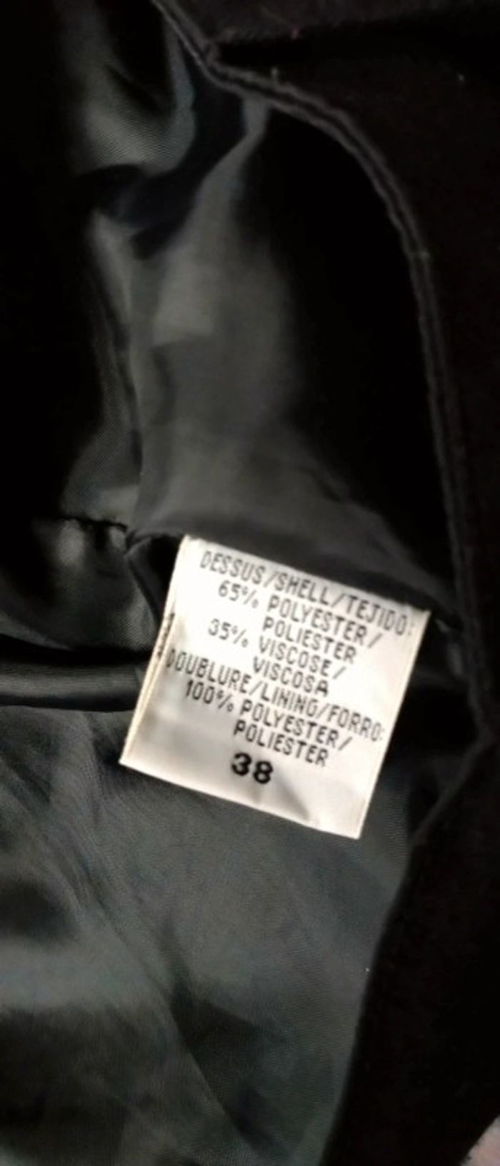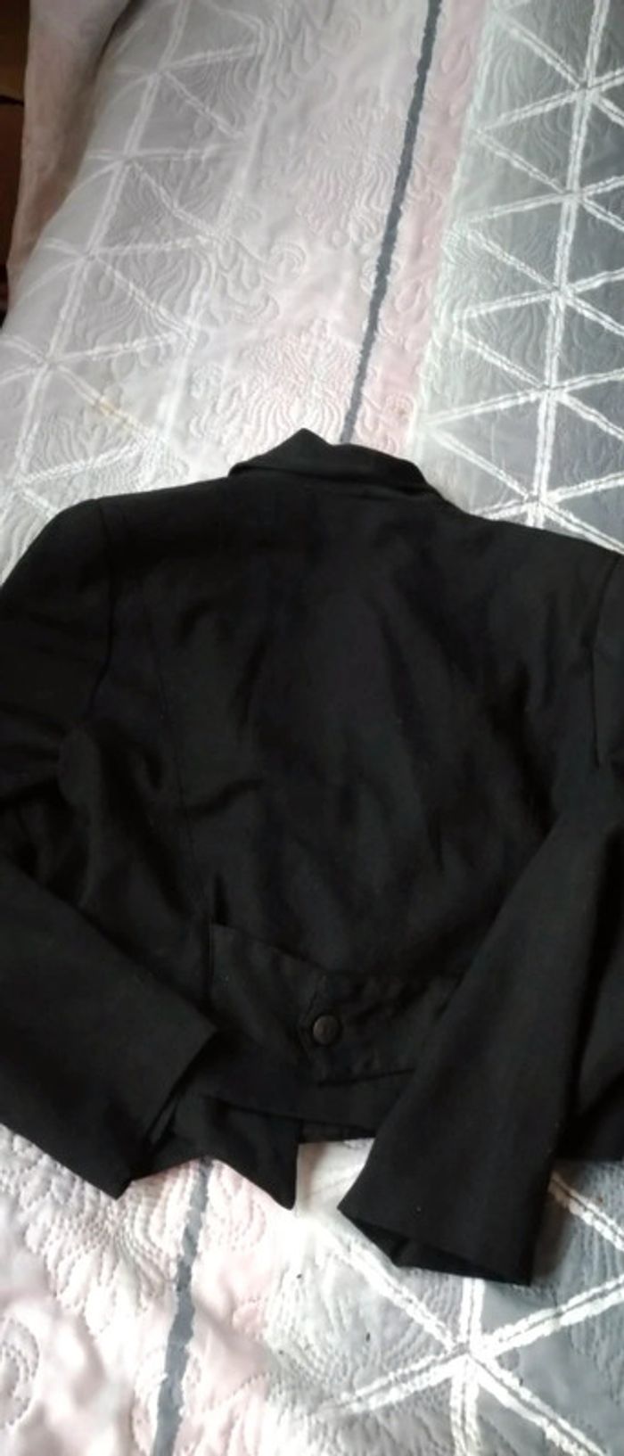 Veste courte Spencer vintage achetée dans les années 90 avec épaulettes en coton et viscose boutonnée avec deux boutons peut se porter ouverte ou fermer plis sur le devant forme asymétrique plus long devant que derrière bouton derrière doublure polyester achetée dans un magasin d articles de mariage idéale pour une grande occasion portée quelques fois en très bon état à part quelques très légères bouloches dues au lavage taille petit peut convenir à un 36 largeur aisselles à aisselles 49 cm largeur épaules à épaules 40 cm longueur 54 cm devant et 47 cm derrière #midolefemme #midolefemme36 #midolefemme38 #midole #Spencer #veste #blazer #vestevintage #annees90 #vesteannée90 #90 #epaulettes #noir #grandeoccasion #mariage