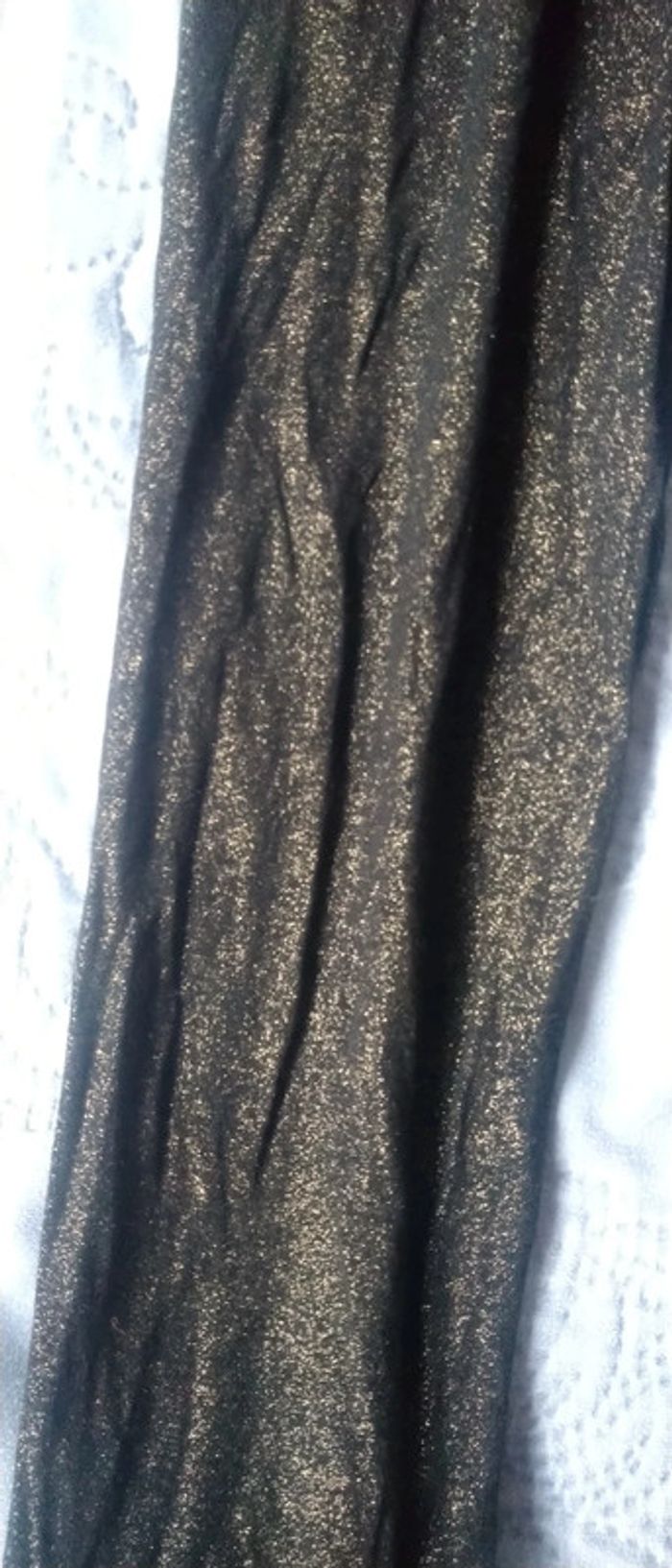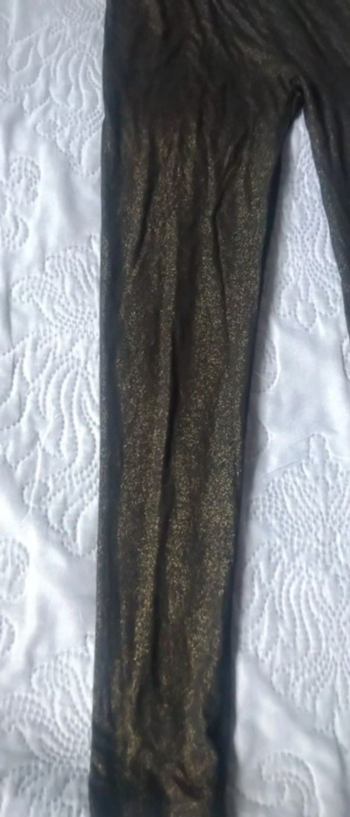 Leggings longueur 76 cm taille élastique en viscose et elastanne couleur noir avec paillettes dorées idéal pour les fêtes de Noël porté sous un jupon ou avec un pull long juste porté une ou deux fois en très bon état N hésitez pas à faire un lot dans mon dressing pour bénéficier d une réduction #midolefille #midole #midolefêtes #midoleNoël #paillettes #noël #fêtes #leggingspaillettes #leggingsdoré #fille #midolefille10ans #bilook #10ans
