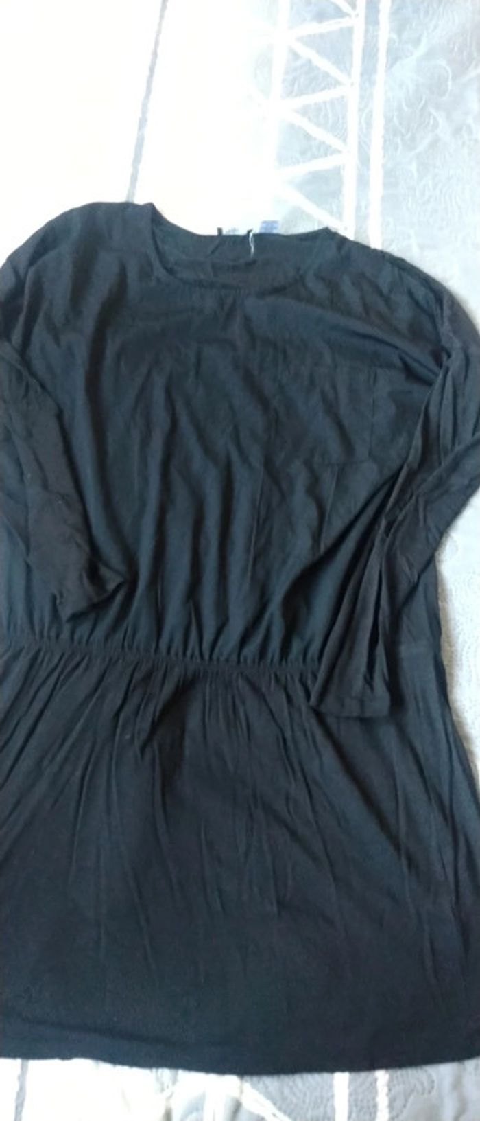 Tunique longue matière légère fluide et extensible en viscose ceinture smock élastique en bas poche sur la poitrine longueur 94 cm peut être portée sur un leggings ou comme robe avec un collant epais largeur aisselles à aisselles 60 cm jamais portée état neuf N hésitez pas à faire un lot dans mon dressing pour bénéficier d une réduction #midole #midolefemme42 #midolefemme42 #midolefemme #midolefemme44 #tuniquelongue #robe #blouse #neuf #laredoute #noir #42/44 #femme42 #fetes #grandeoccasion #noir