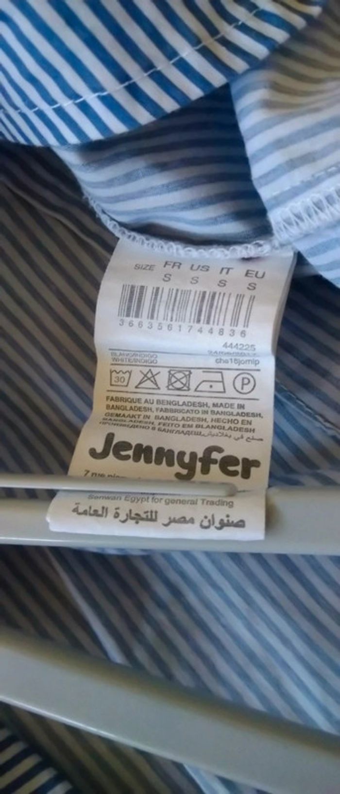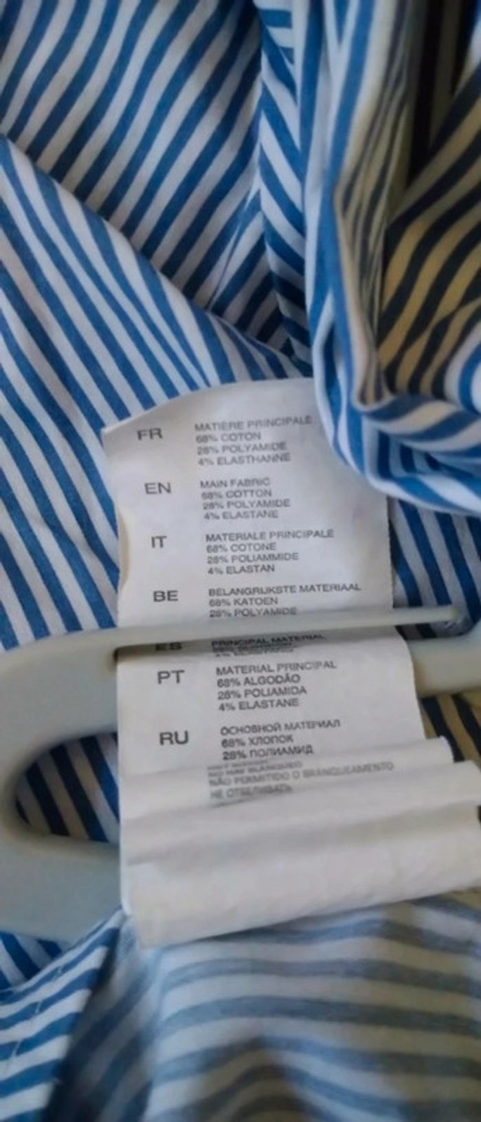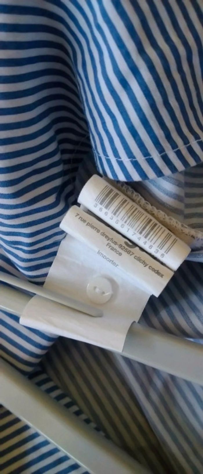 Chemisier en coton et elastanne col ouvert en V rayures bleues et blanches coupe cintrée resserrée à la taille jamais porté état neuf avec bouton de rechange taille S correspondant à un 36 N hesitez pas à faire un lot dans mon dressing pour bénéficier d une réduction #midolefemme #midole #midolefemme36 #jennyfer #chemise #chemisier #chemiseàrayures #36 #S