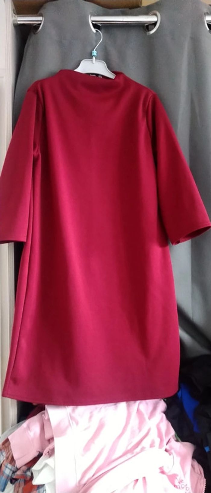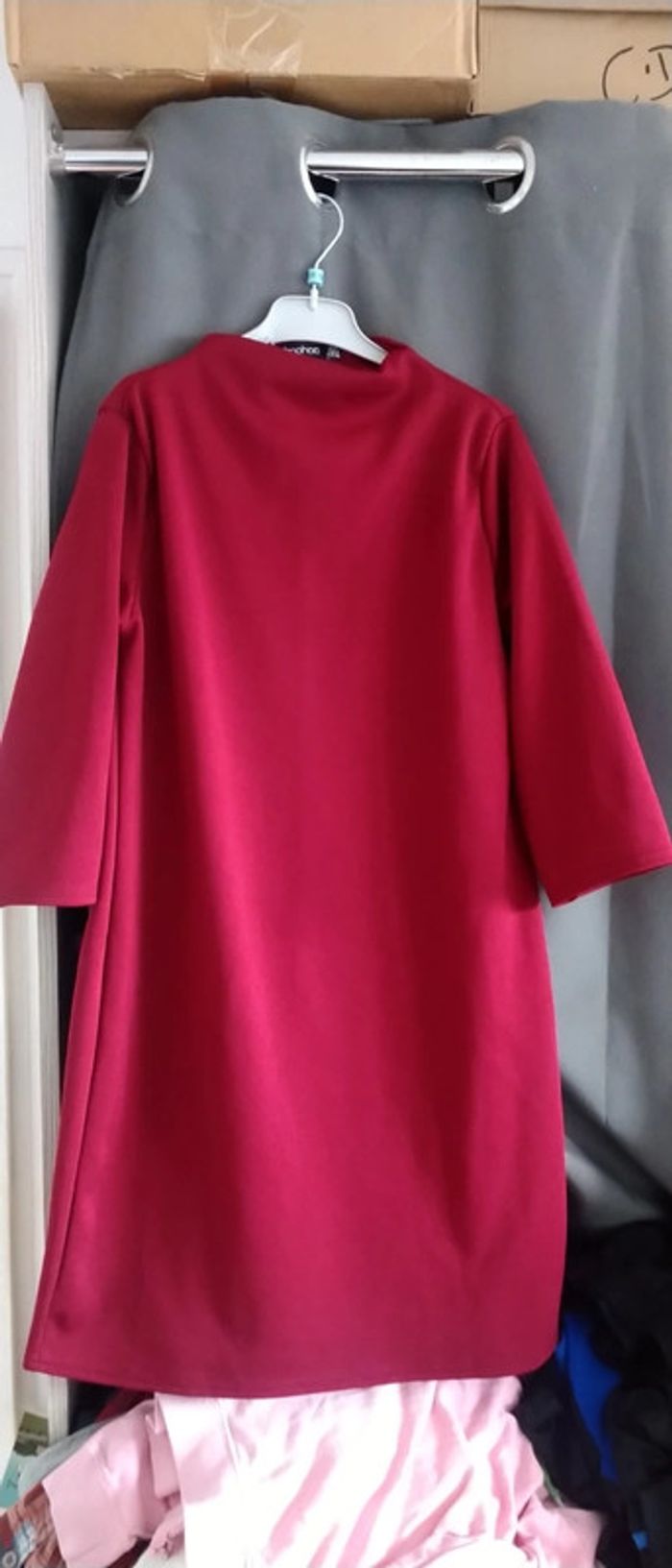 Robe manches 3/4 rouge vif bordeaux matière epaisse et aspect satiné en polyester et elastanne se porte seule ou agrémentée d une large ceinture longueur genoux portée une ou deux fois en excellent état comme neuve #robe #roberouge #robesatinee #robemanches3/4 #manches3quarts #boohoo #femme #36 #tailleS #rouge #midolefemme #midolefemme36 #midoleS #midolefêtes #midolenoël