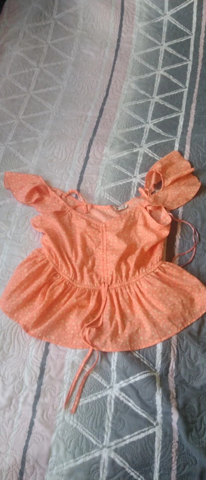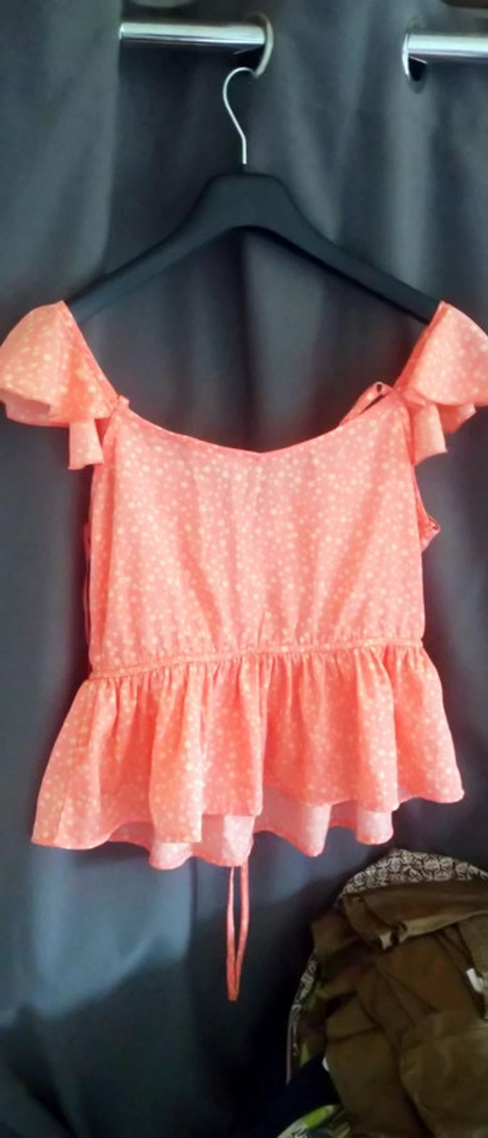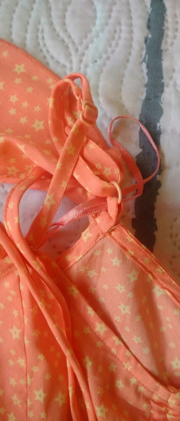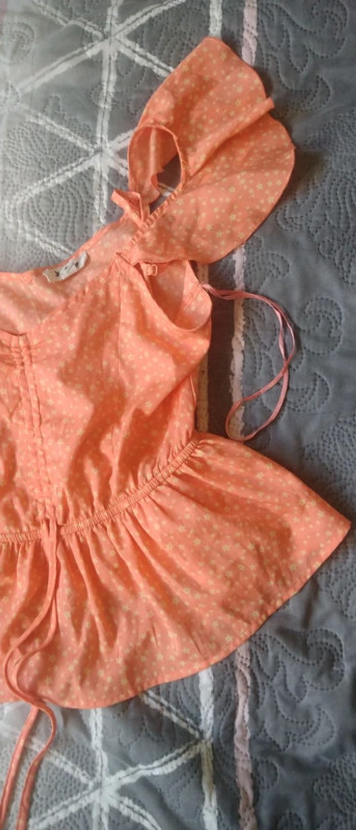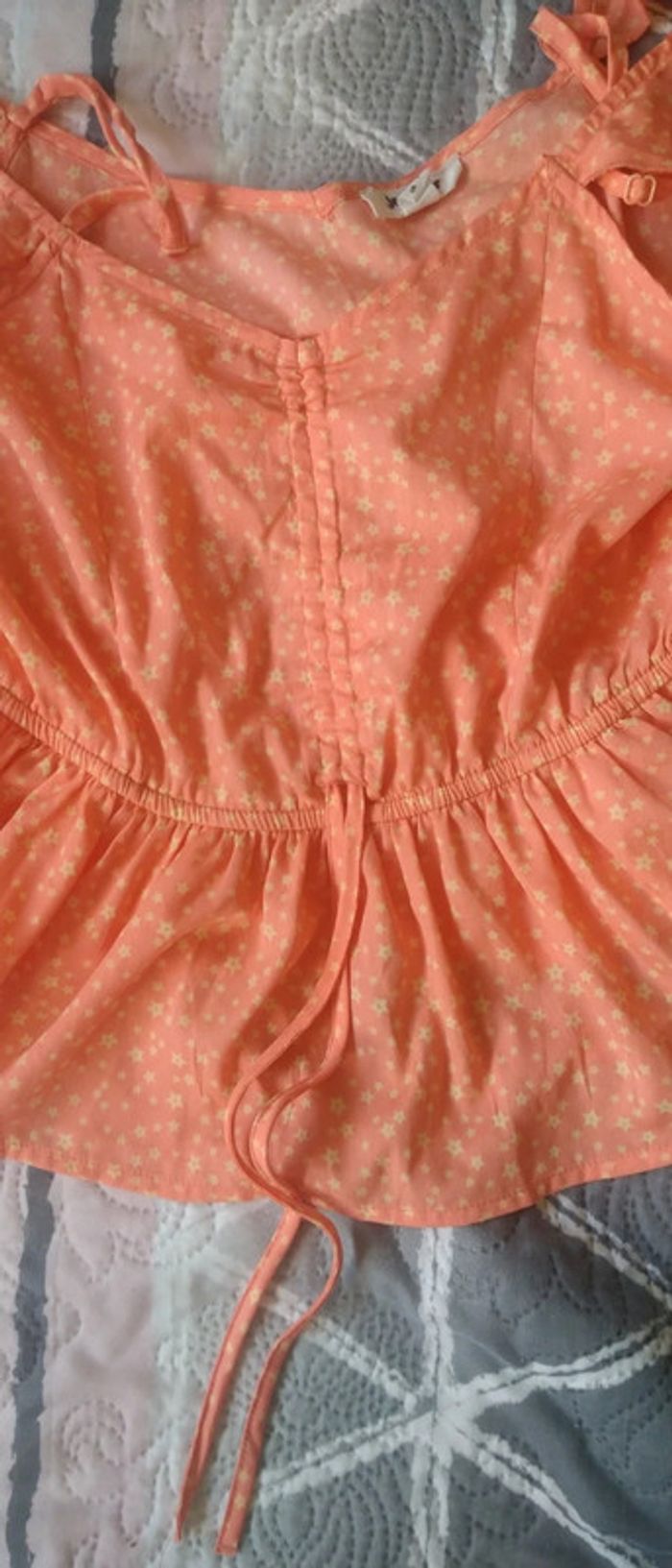 Haut matière fluide et légère motif étoiles bas volanté taille cintrée lien à la taille très peu porté en excellent état comme neuf #haut #top #hautepaulesdenudees #hautepauledecouverte #femme #s #36 #jennyfer #corail #etoiles #midole #été #étémidole #midoleété #midolefemme36 #midolefemmeS