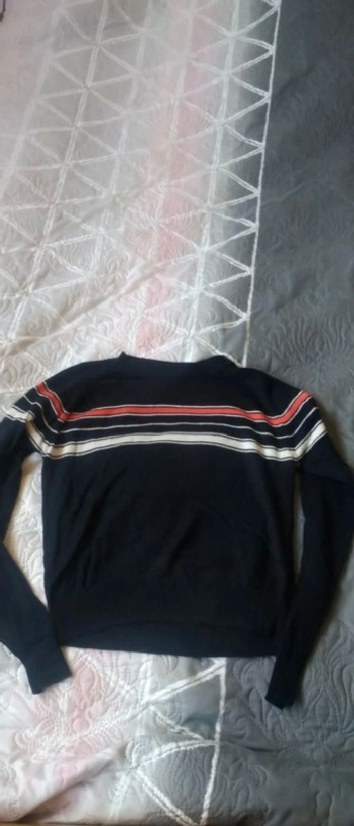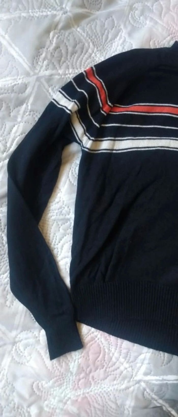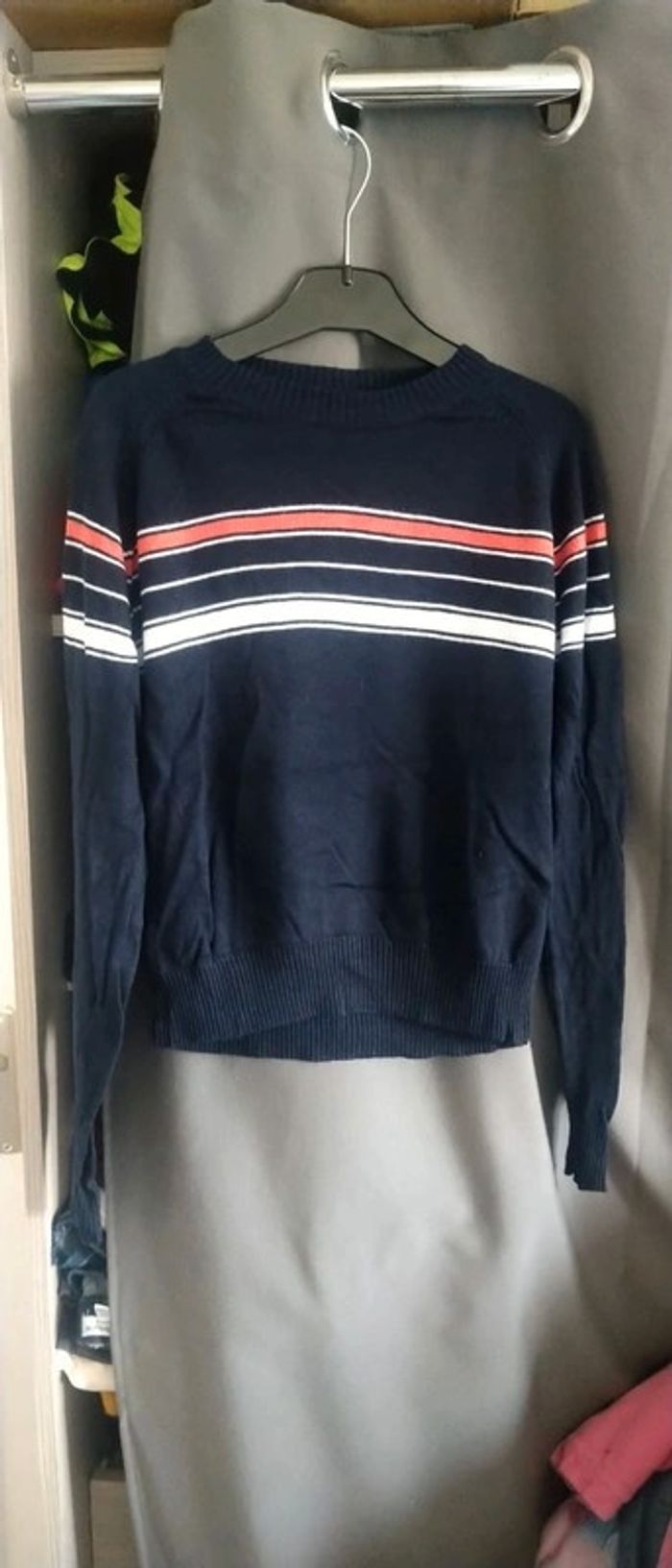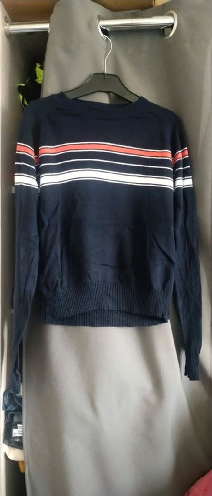 Pull fin idéal pour la mi saison devant légèrement plus court que le derrière manches très longues mi long très peu porté en excellent état ##pull #pullfin #fille #14ans #xs #laredoute #rayures #marine #midolefille14ans