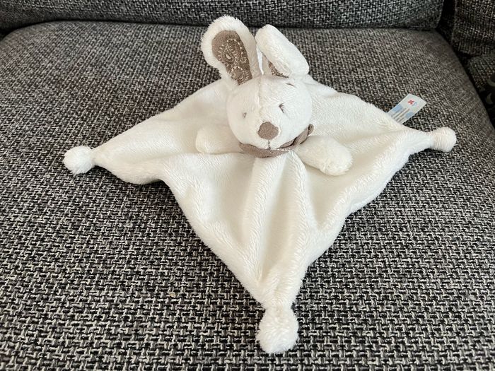 Doudou lapin bandana Nicotoy Blanc et marron Broderies #jessicaeden78doudous