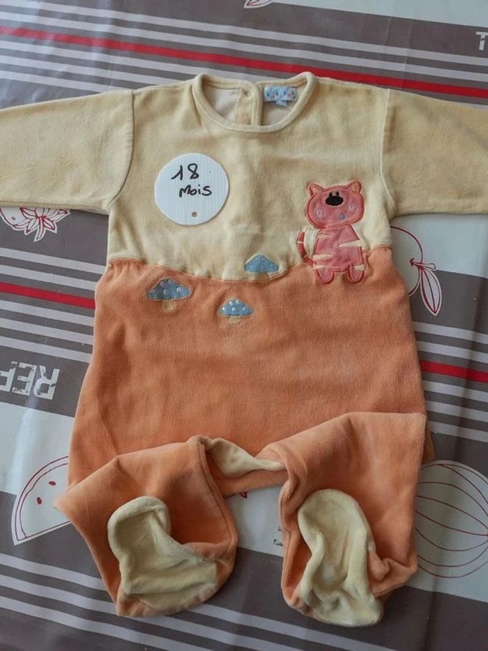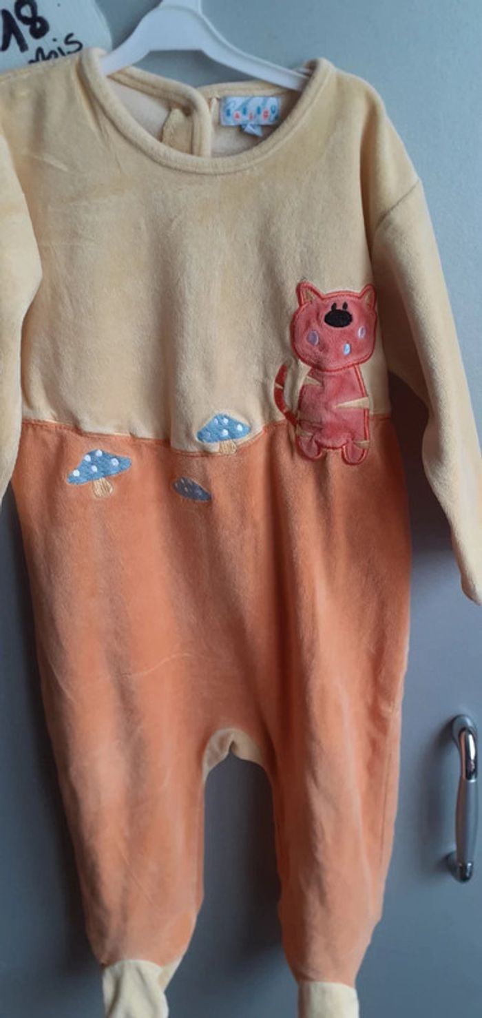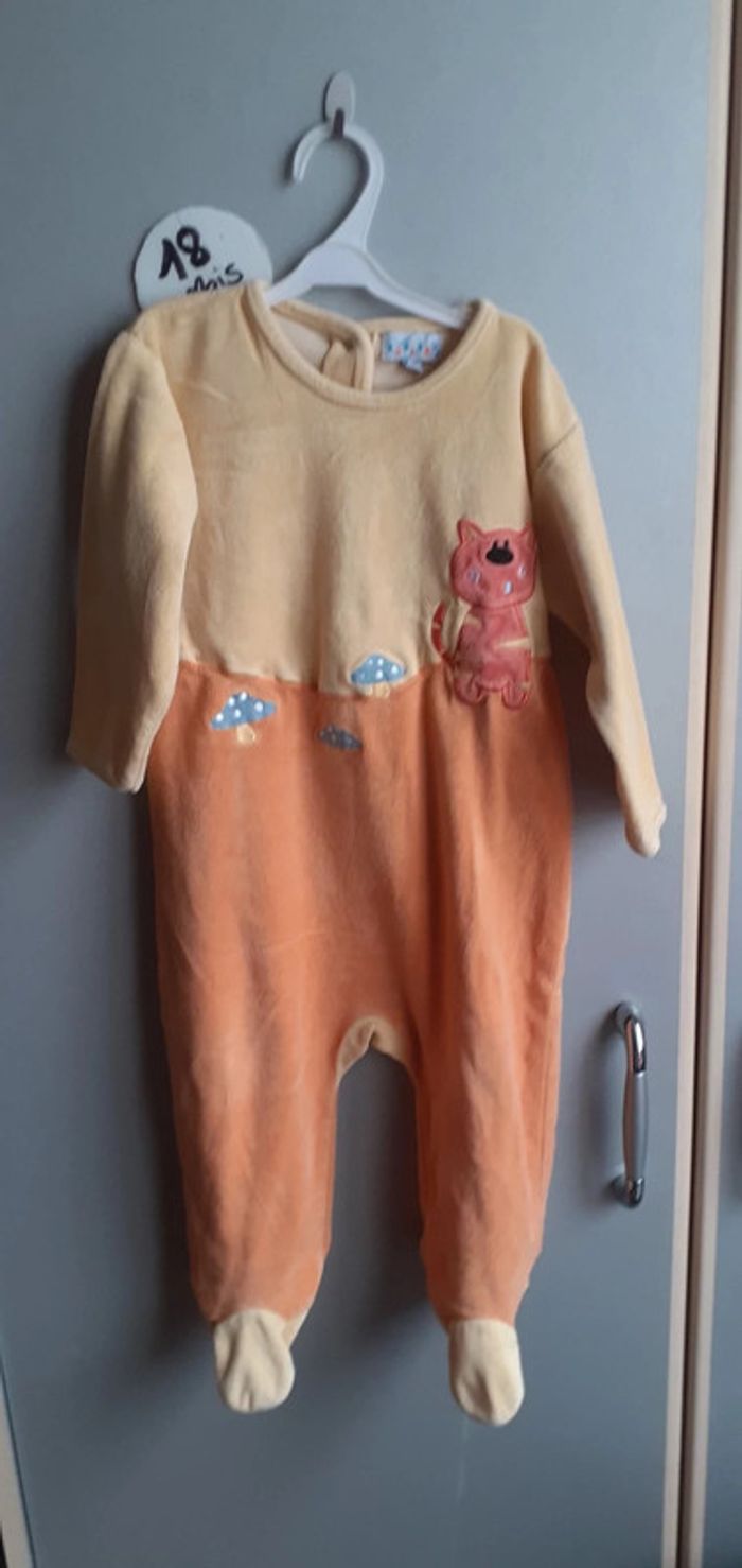 Pyjama grenouillère et son petit chat Pressions à l'arrière Taille 18 mois Tres bon état #latetelledu29fille18mois #latetelledu29mixte18mois