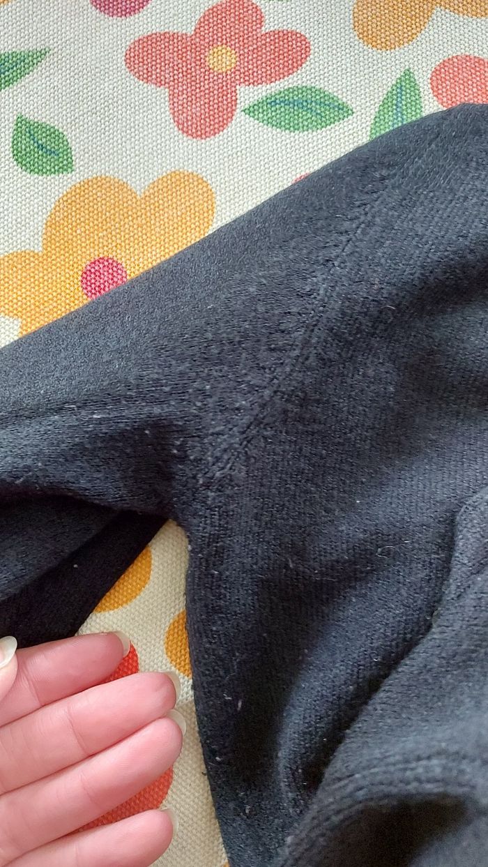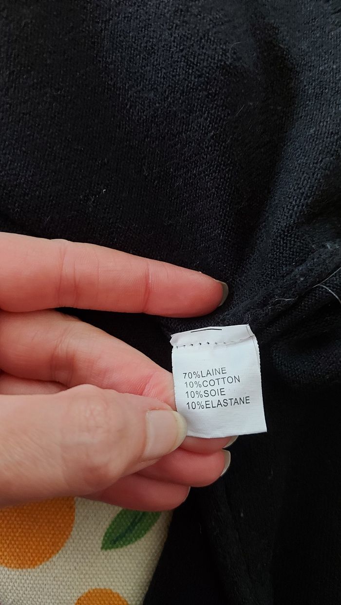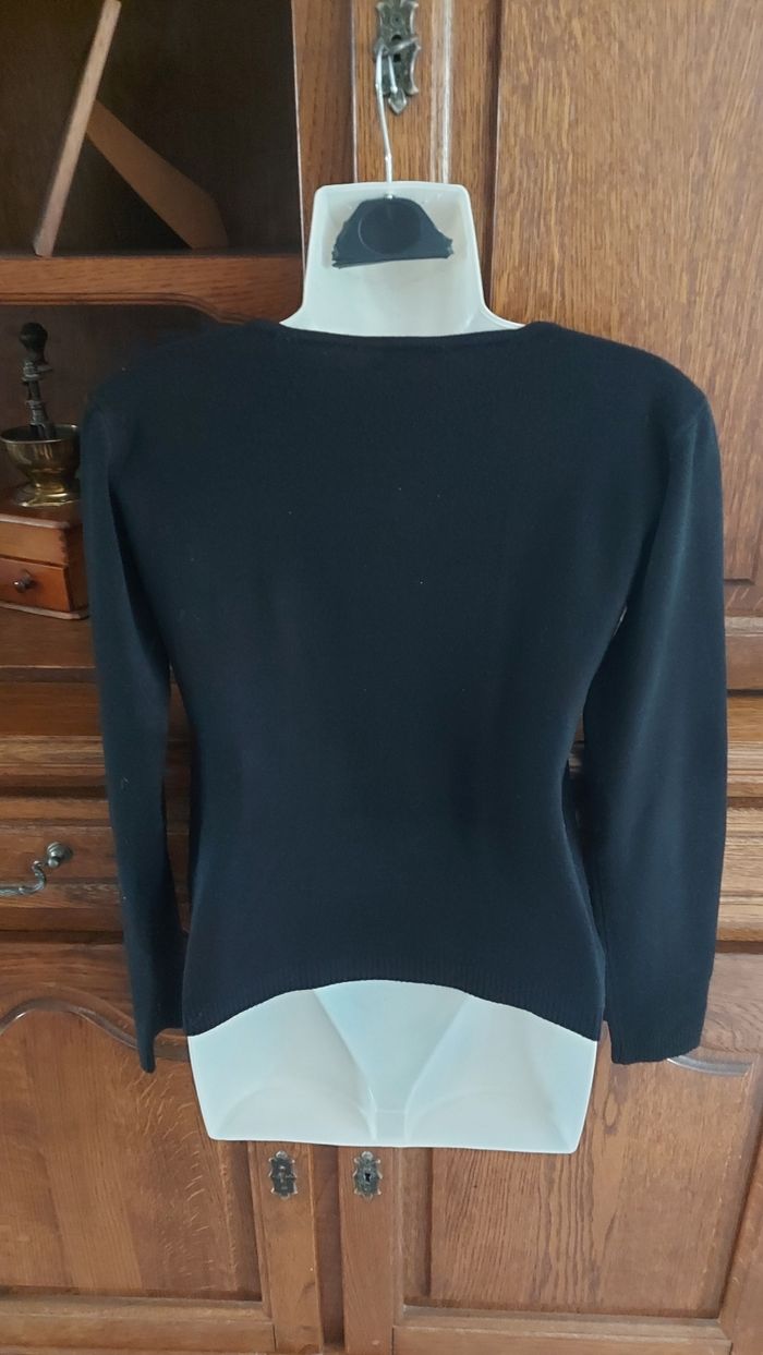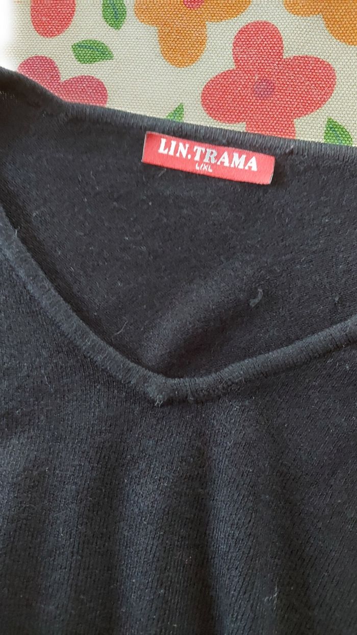 Pull chaux noir, col V, taille L/XL Bon état, quelques fils tirés et très légèrement pluché Sous-bras 51 cm, Longueur 56 cm