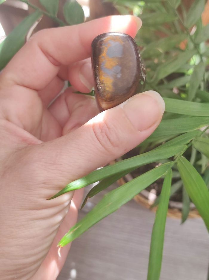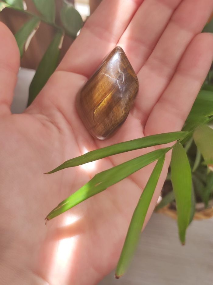 la variété de quartz Oeil de tigre nous permet de gagner en efficacité en rassemblant les informations éparpillées pour former un tout cohérent. Guérit les problèmes d'illégitimité, la sensation de ne pas être à sa place et l'auto-sabotage. Favorise la reconnaissance des talents et des compétences de l'individu. Parfait pour résoudre les conflits intérieurs, surtout ceux provoqués par la fierté et l'obstination.