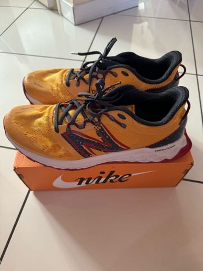Chaussures de trail homme GAROE V1 NEW BALANCE Conçue pour les coureurs prêts à s'élancer sur les sentiers, la New Balance Fresh Foam Garoe offre durabilité et confort pour vous aider à poursuivre votre route. Caractéristiques techniques : Amorti (running) : Très bon amorti Type de surface : Sentier, Route Drop : 8.0000 Millimètre Renfort de stabilité : true Type de foulée : Universelle Poids en taille 42 : 304.0000 Gramme Conçue pour les coureurs prêts à s'élancer sur les sentiers, la New Balance Fresh Foam Garoé offre durabilité et confort pour vous aider à poursuivre votre route. Cette chaussure pour homme est dotée d'une semelle intermédiaire Fresh Foam légère et matelassée pour le confort et d'une semelle extérieure AT Tread pour l'adhérence lors de tous types d'activités sur et hors route. Fabriquée à partir d'une tige élégante et souple, cette chaussure de sport est plus que prête pour votre prochaine aventure en plein air. Utiliser 1 fois j’ai voulu tester des chaussures de trail cependant cela ne me correspond pas. État comme neuve N’hésitez pas pour plus d’informations