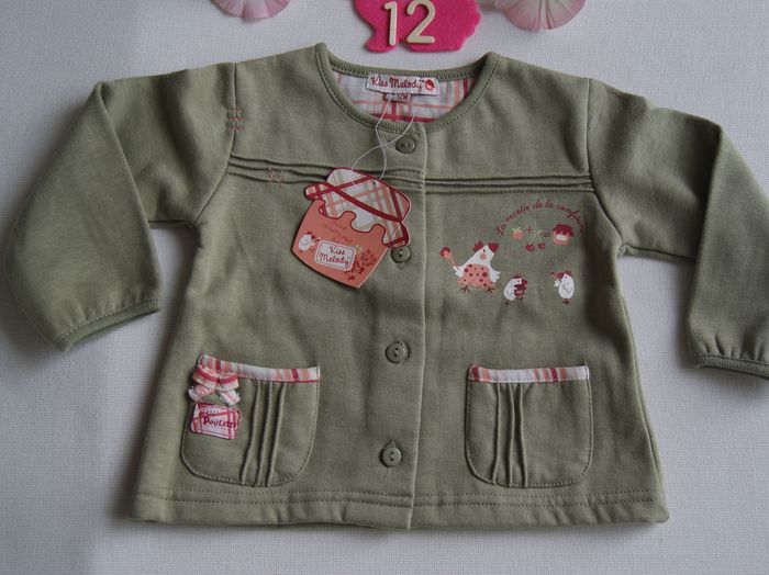 * Superbe Veste / Gilet / NEUF / à Offrir / avec étiquette - Qualité Hyper confortable / doux : molletonnée à l'intérieur - La recette de la confiture de Kiss Mélody TAILLE : 12 Mois - Carrure : 23 cm * longueur : 29 cm