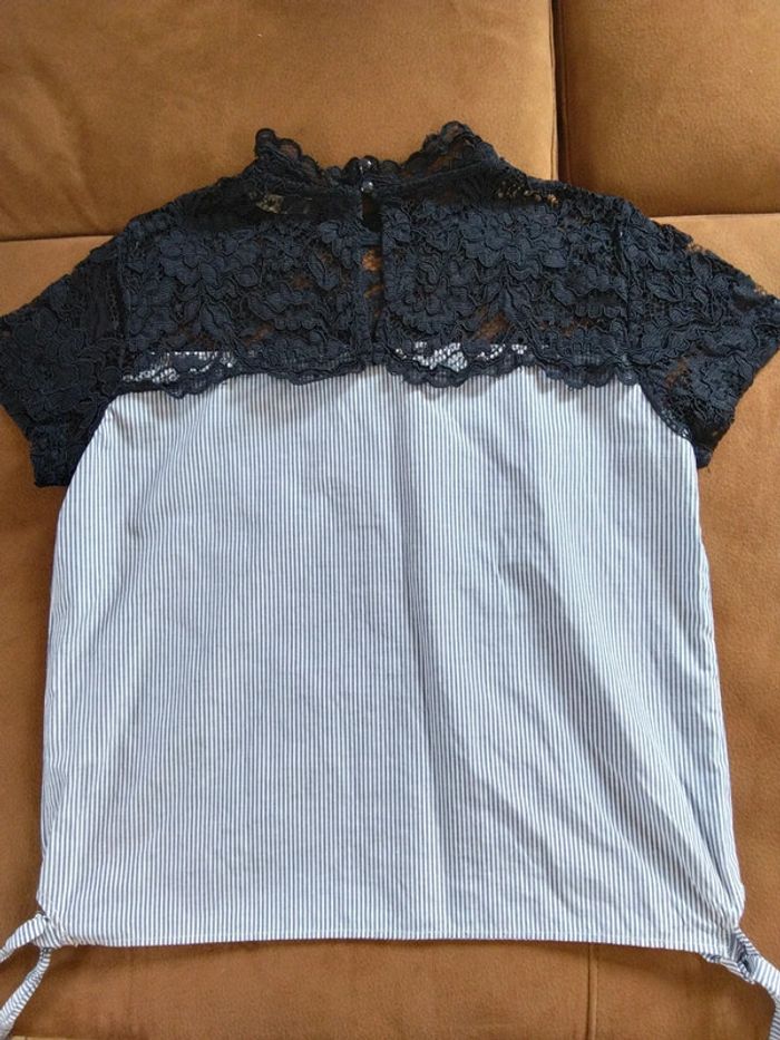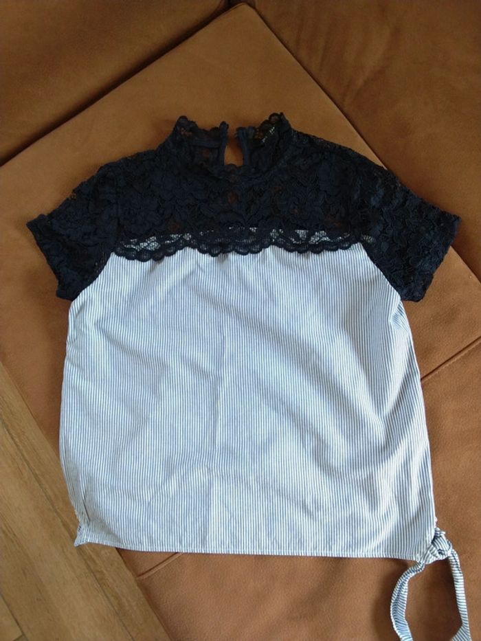 Magnifique top rayé à dentelle ajourée Fermeture au dos du col par boutons Liens à nouer à la taille Jamais porté