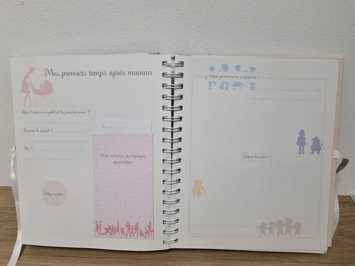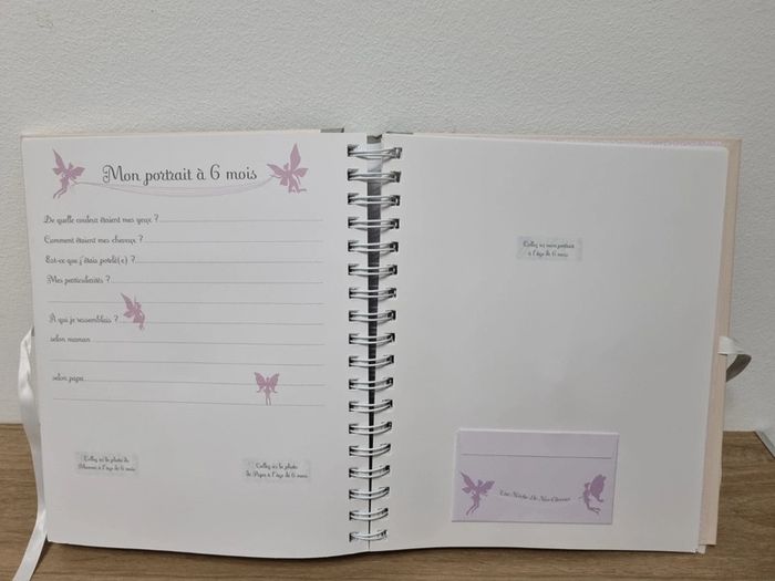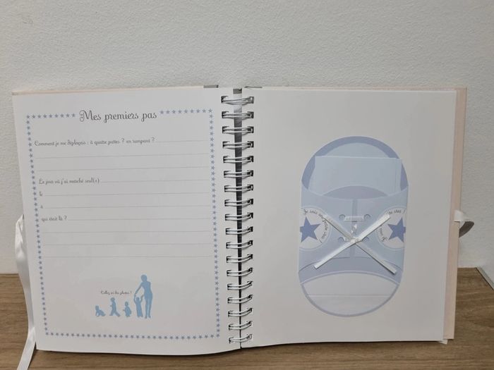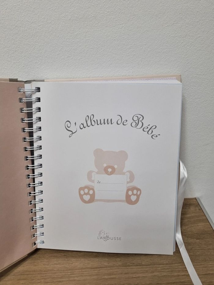 Un album avec des animations pour inscrire les souvenirs et conserver les photos des premiers mois de la vie de bébé. Emplacements pour coller ses photos et des animations nombreuses et variées : pop-up, volets, rabats, pochettes, carnets, toise… Fermeture par un ruban. N'hésitez pas à faire un tour dans mon dressing, % pour achat en lot.