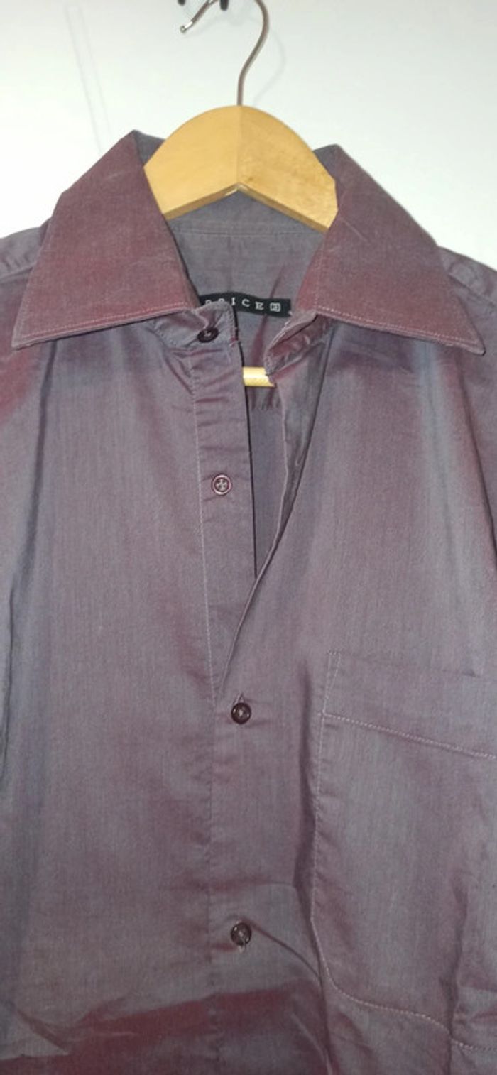 Chemise brice TailleL indiqué 3 mais correspond à un L Reflet violet aspect satiné Idéal pour les fêtes