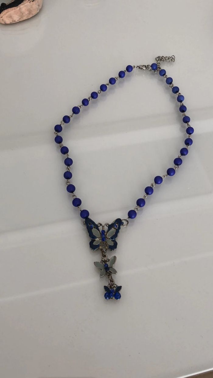Collier bleu papillon