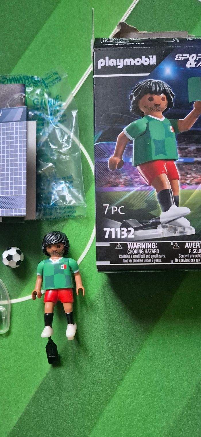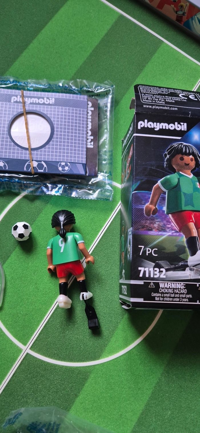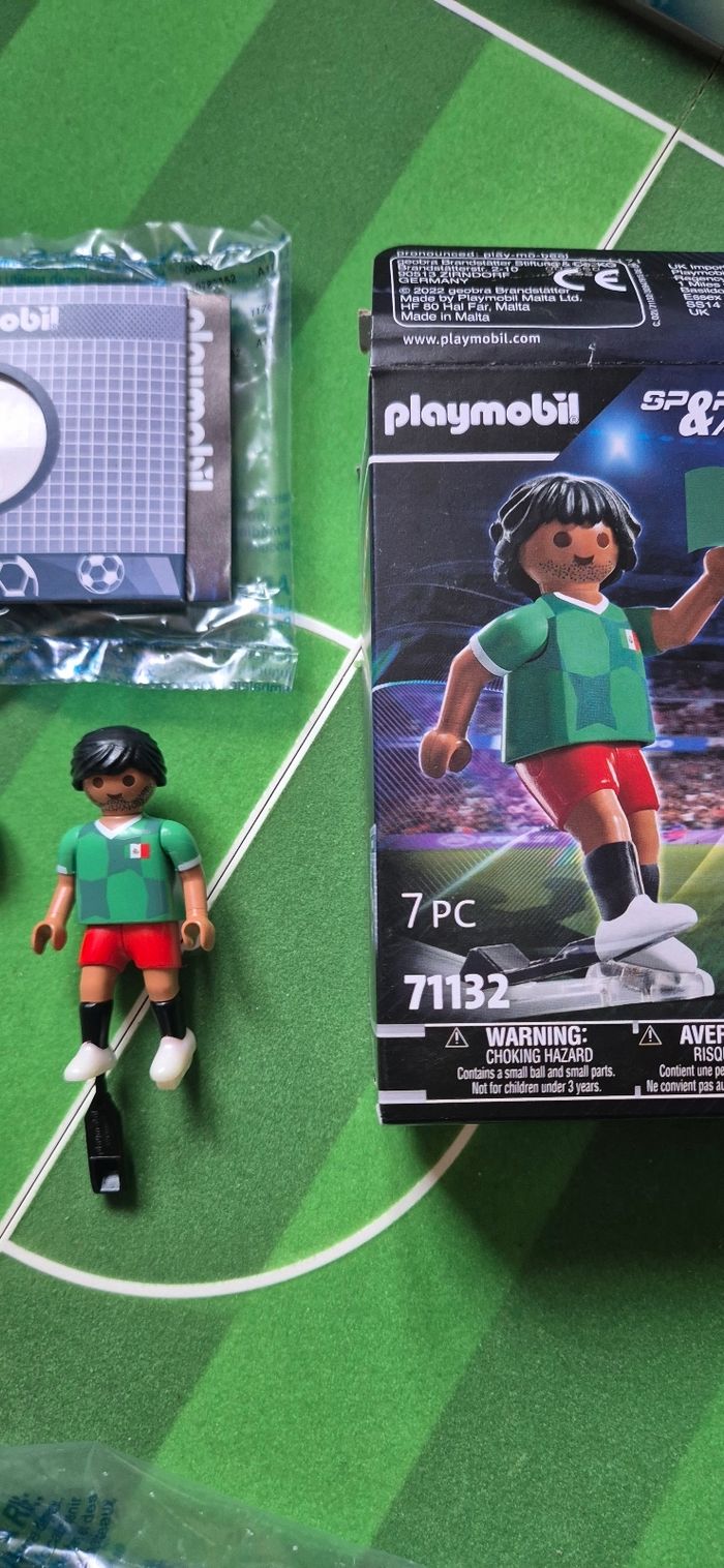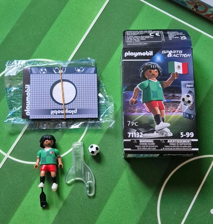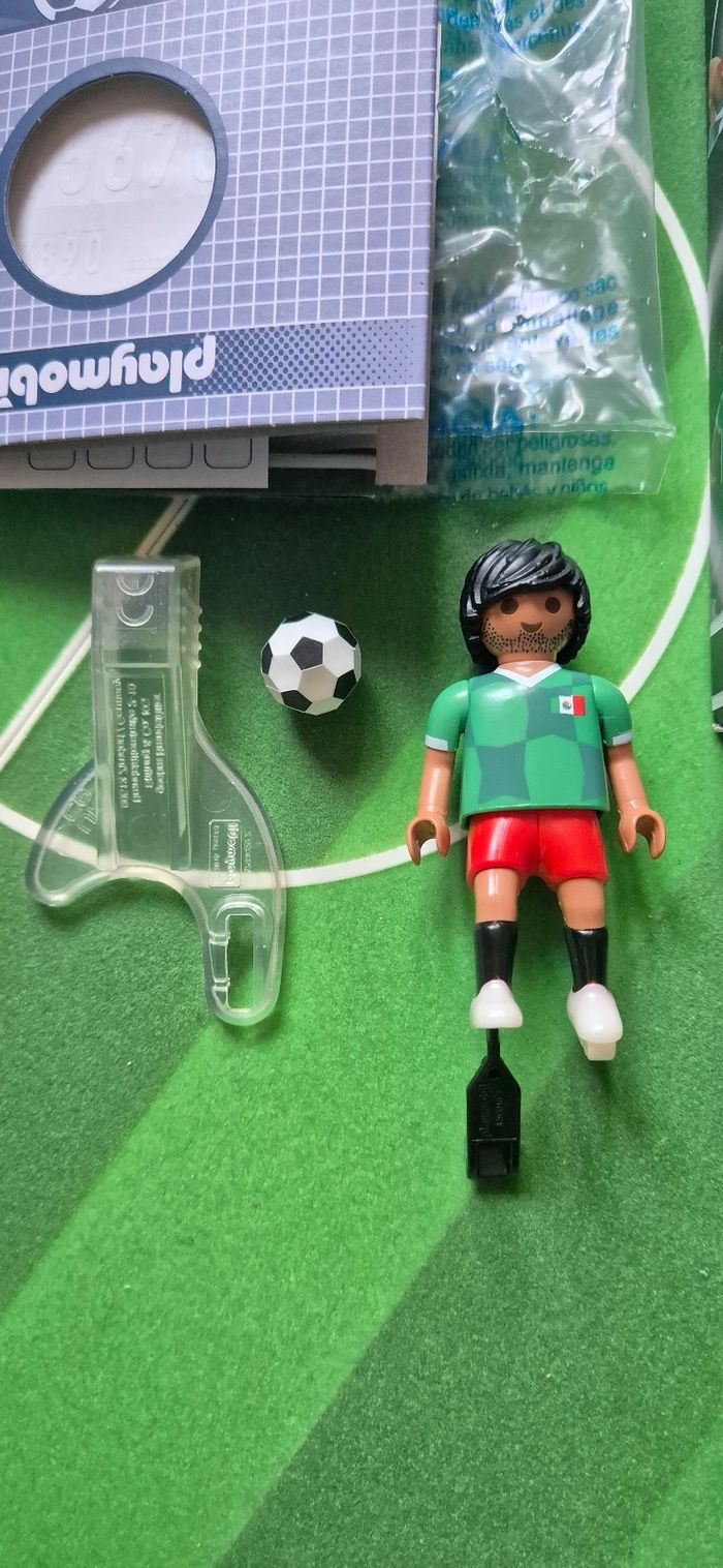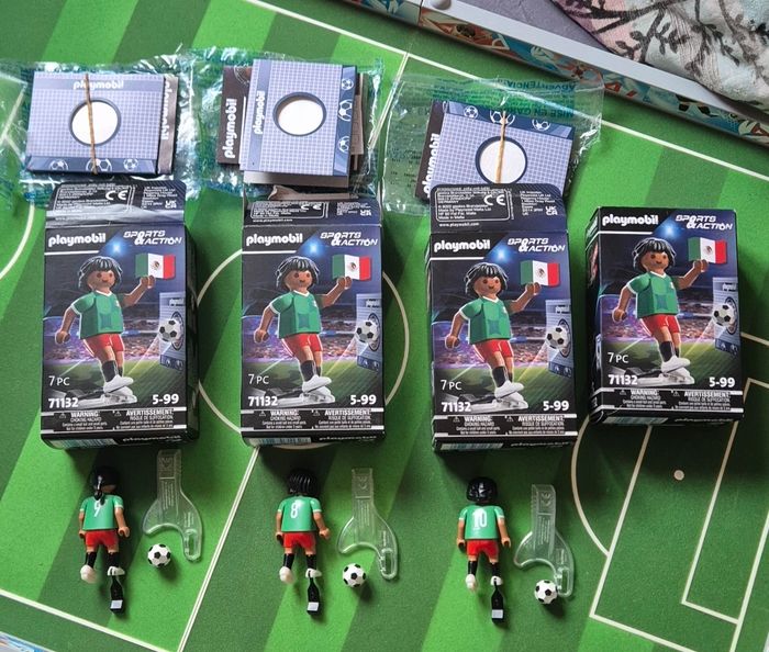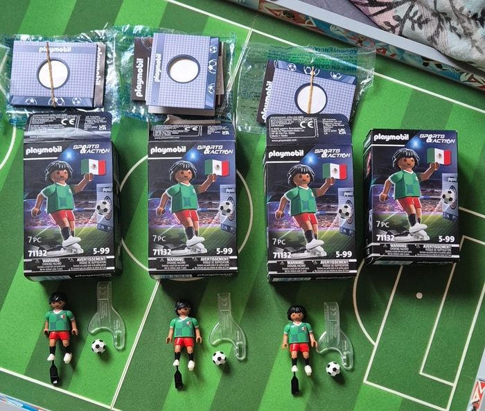 Lot de 4 playmobil football Mexique 71132 dont 1 boîte Neuve jamais ouverte et 3 boîtes ouverte avec 2 avec nouveau look coiffure. A vendre en lot ou séparément