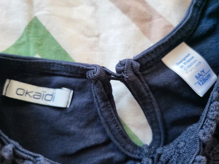 Tee-shirt sans manches 8 ans Bleu marine Okaidi Joli détails fleurs ajourées en haut