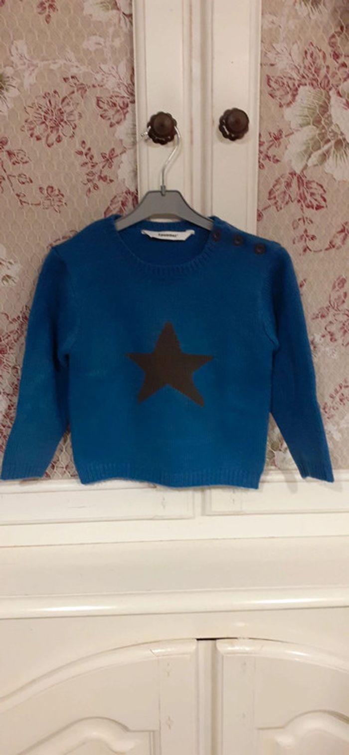 Pull bleu étoile marron 3 Pommes 3 ans - photo numéro 1