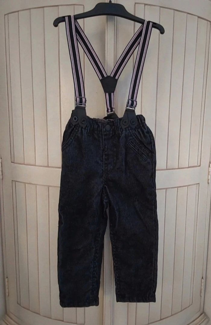 Pantalon  salopette velour noir +bretelles 12/18 mois 81 cm - photo numéro 2