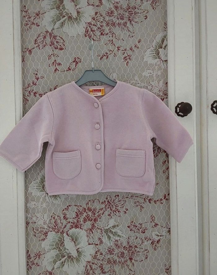 Pull gilet rose clair en sweat 3/6 mois 67 cm - photo numéro 1