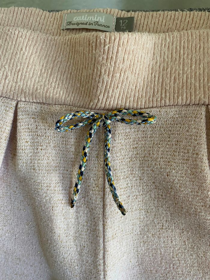 Vends pantalon bébé fille, rose clair, reflet doré. Noeud fin coloré sur le devant. Marque Catimini. Très bon état. Taille 12 mois Prix: 5€