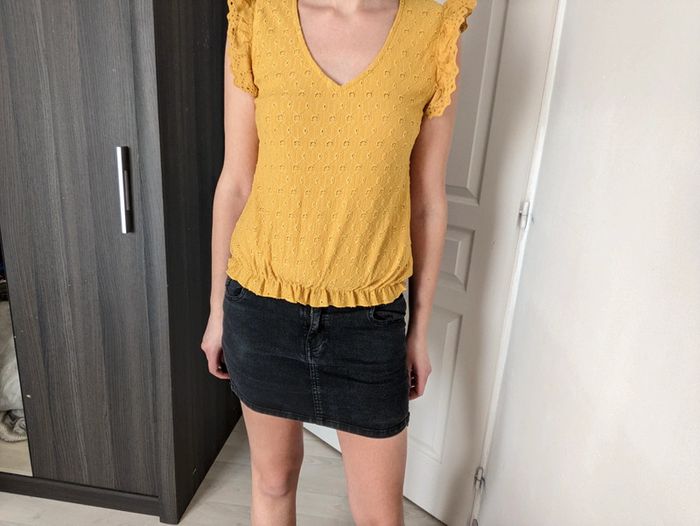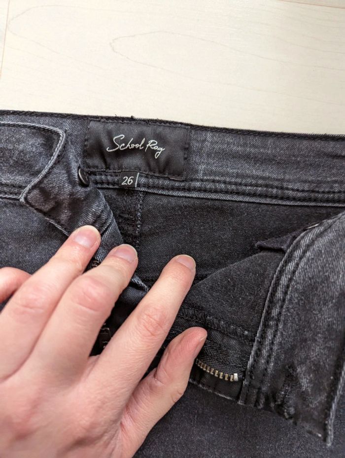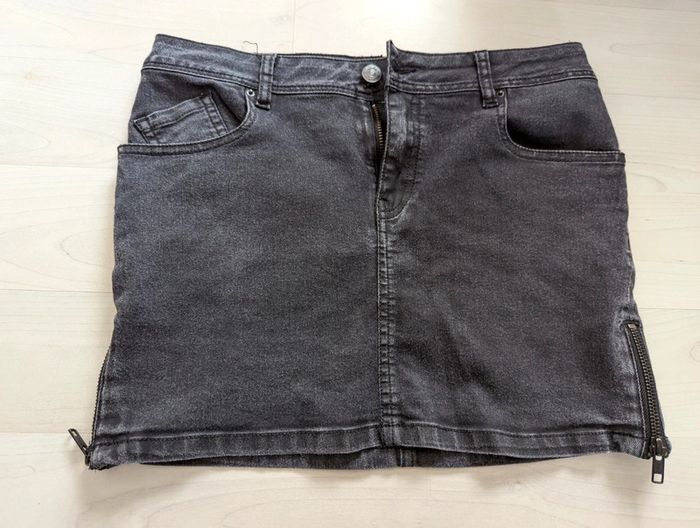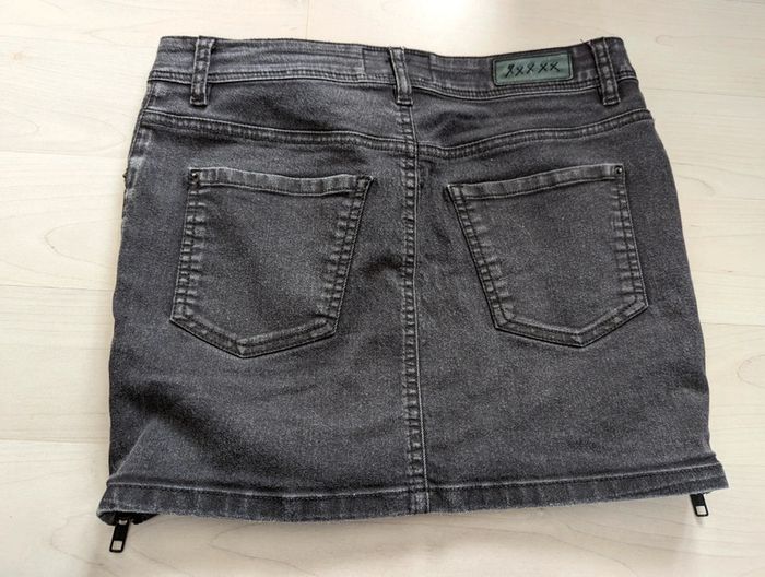 Taille 36. Longueur 34cm. Bon état (délavée à certains endroits). Fermeture éclair sur les côtés.