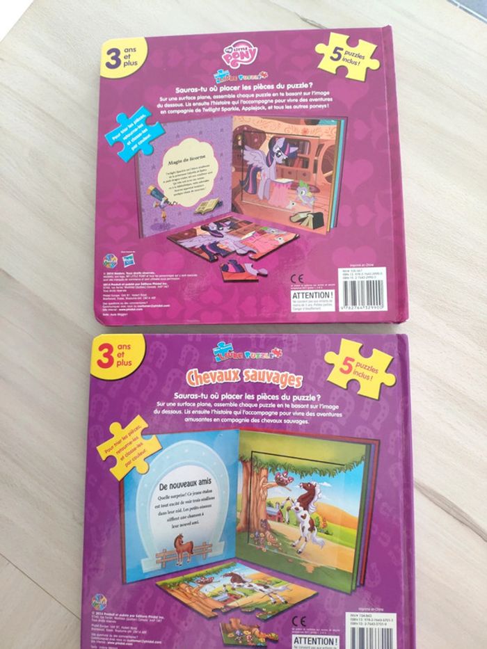 Lot de deux livres puzzle chevaux 5 puzzles chacun Little pony . Des pièces ont été pliées, certains puzzles sont intacts. Voir les photos. Les modèles sont derrière pour pouvoir mettre les pièces plus facilement. Complets #melpi08jouetsenfants