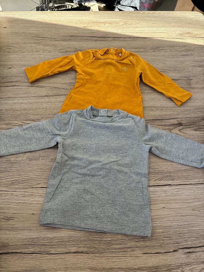Lot de 2 Tee-Shirt col roulé (1 jaune et 1 gris).Taille 6 mois / 67 cm
